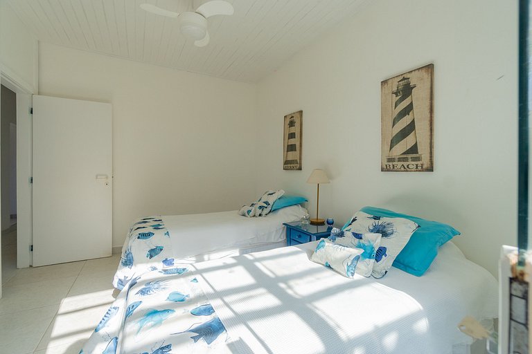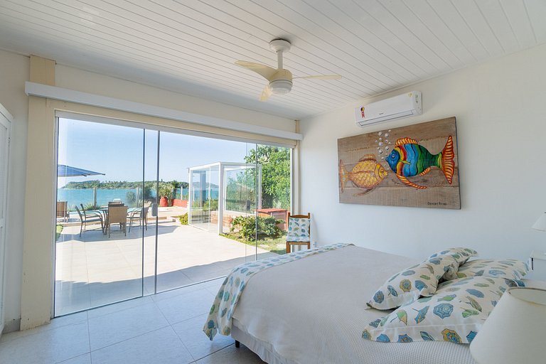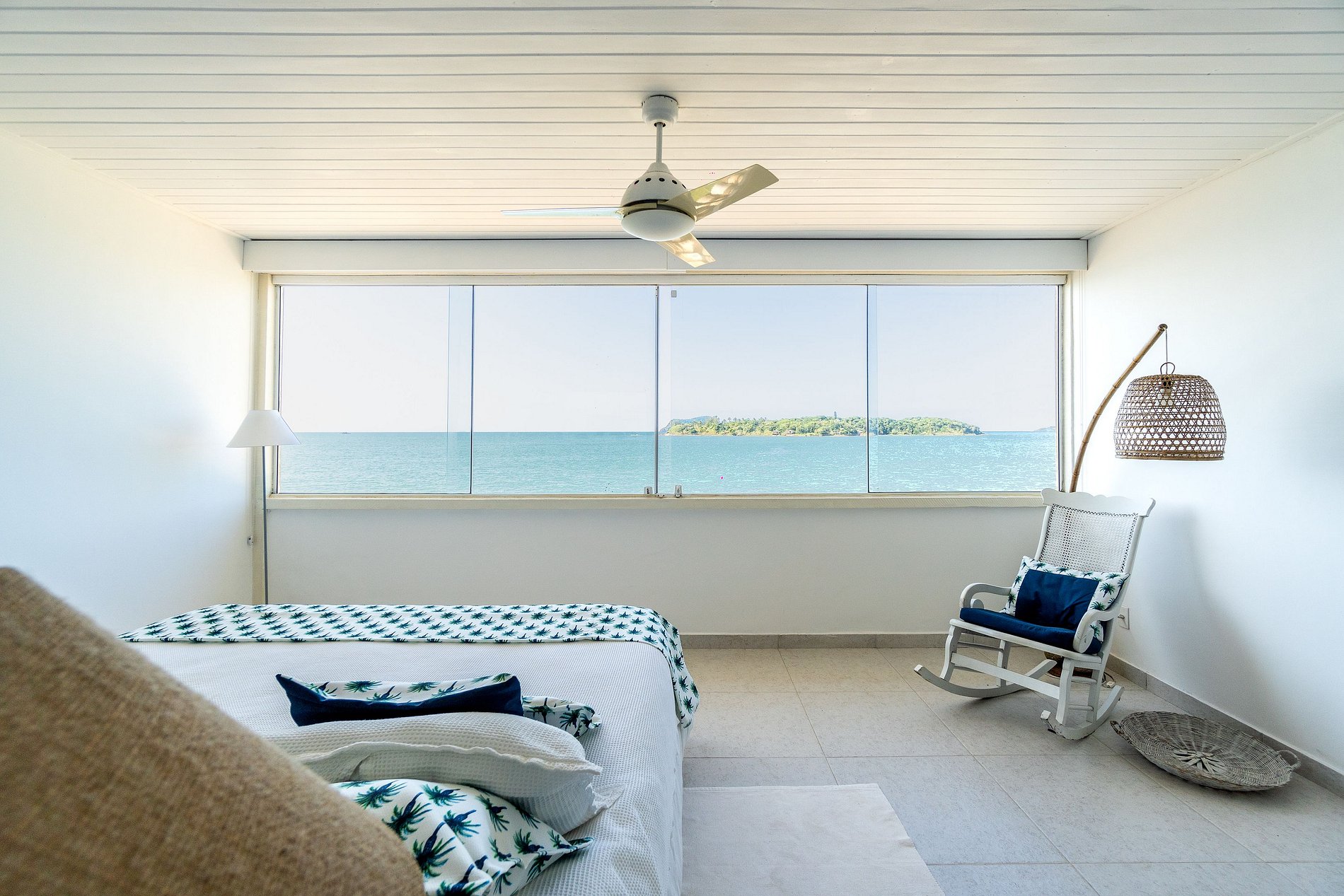 São 7 suítes, três delas com vista para a praia e uma com um espaço reservado para relaxar com jacuzzi, uma ducha e rede.