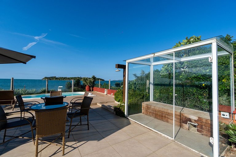 Com o mar logo na frente, depois de um mergulho refrescante, o clima de tranquilidade continua na piscina e na sauna que ainda pode ter vista para um sol cinematográfico.