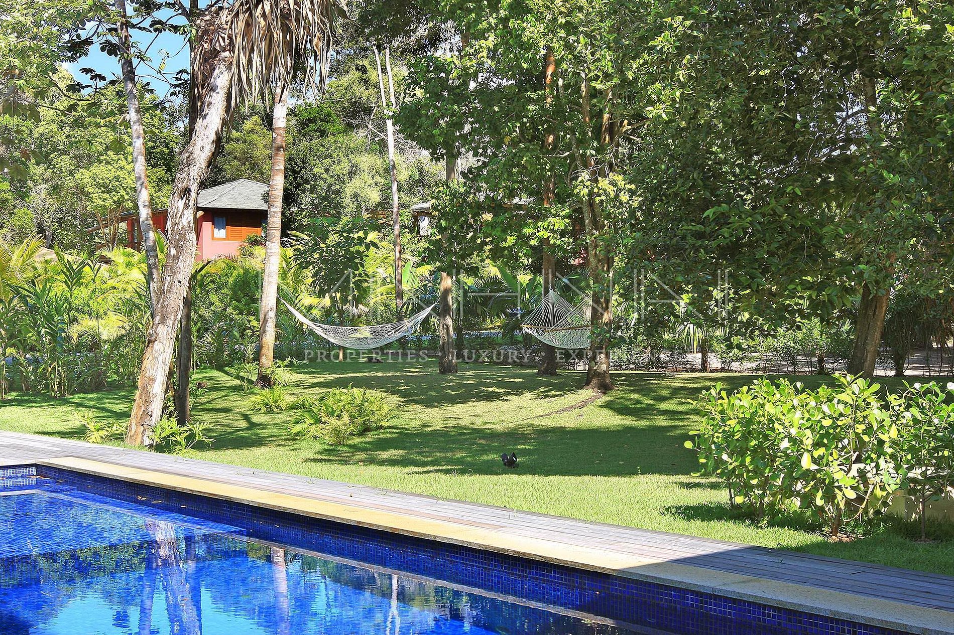 As cores do jardim contrastando com o belo azul da piscina se somam à alegria das cores da decoração leve e descontraída. Tanta energia só poderia ter um resultado incrível: esta deliciosa casa de 5 suítes, completas, arejadas e cheias de luz.