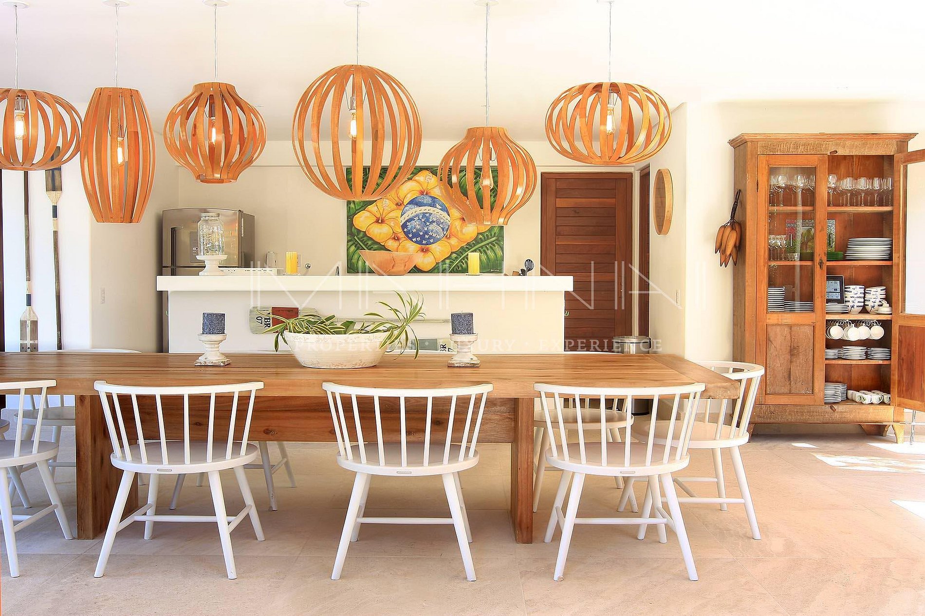 Sala de jantar com mesa e aparelhos de jantar para 10 pessoas + mesa para 10 pessoas no espaço gourmet.