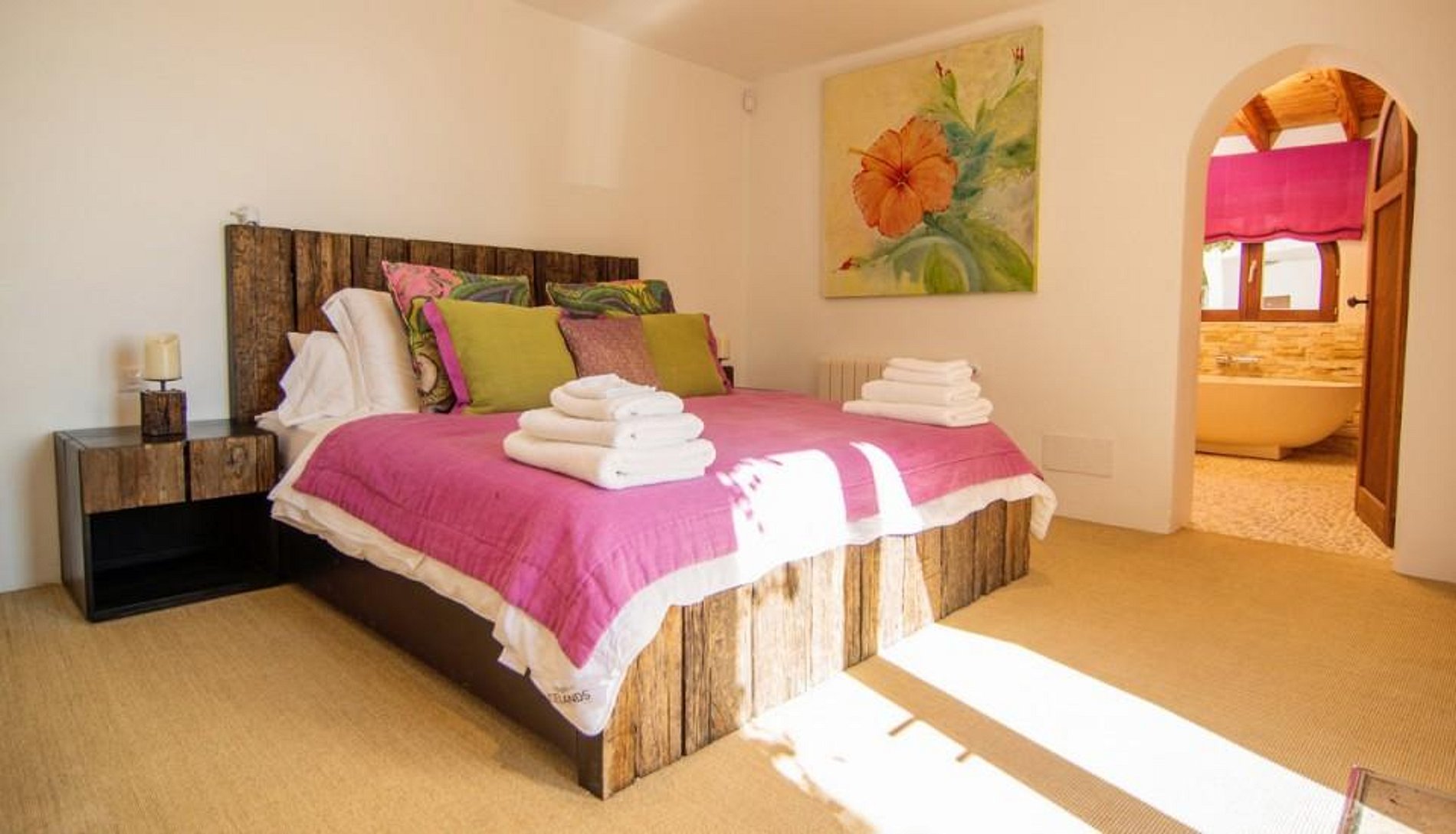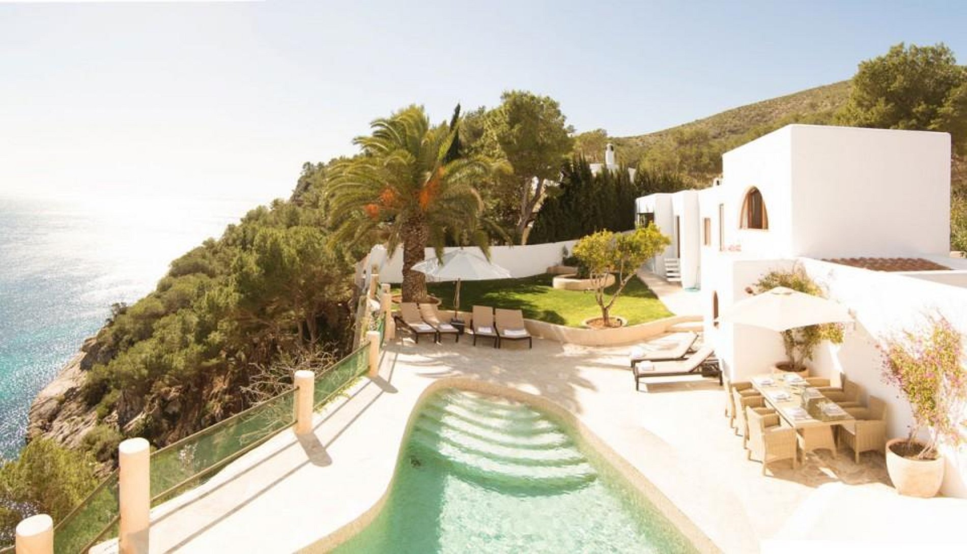 Villa Sol y Sierra é uma vila à beira-mar maravilhosa, localizado na costa leste de Ibiza. Villa Sol y Sierra é composta por uma casa principal e um anexo de hóspedes. Esta extensa propriedade situada no alto com vista e acesso para o mar pode acomodar até 10 pessoas e tem várias áreas de lazer, para relaxar e simplesmente desfrutar da incrível vistas sobre a costa espanhola.