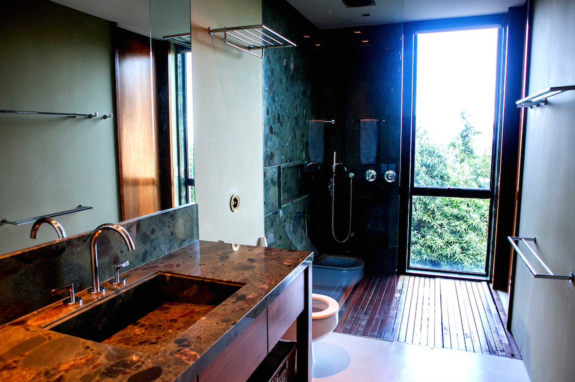 No interior, a casa tem uma suíte master com closet, escritório e uma jacuzzi. Além disso, a casa conta com mais três Suites de hóspedes.