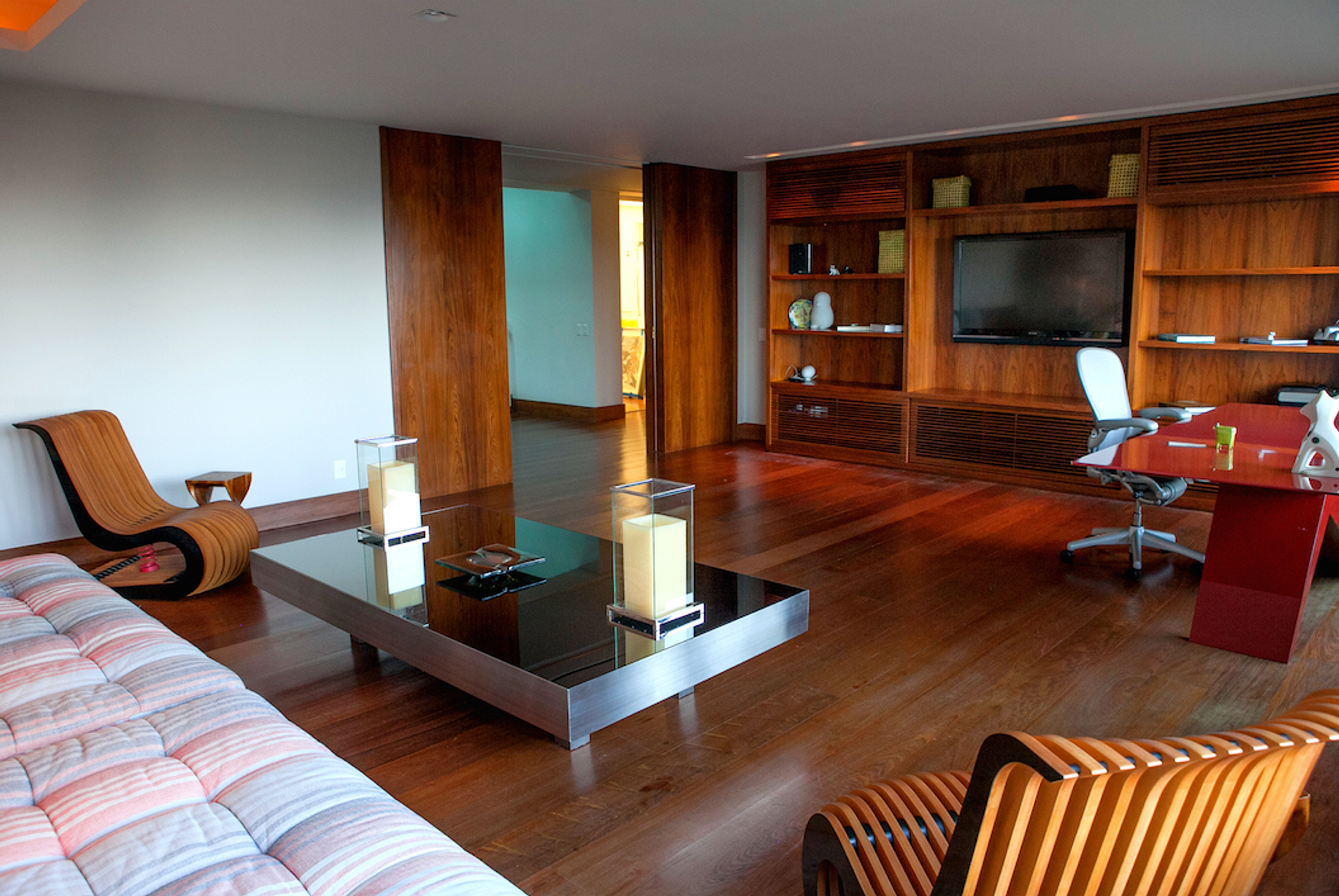 No interior, a casa tem uma suíte master com closet, escritório e uma jacuzzi. Além disso, a casa conta com mais três Suites de hóspedes.