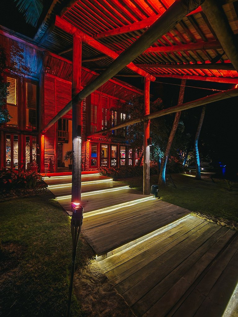 Possui 5 suítes na casa principal e 2 novas suítes no anexo da casa. Dispõe também de uma ampla sala de estar, espaço gourmet com churrasqueira e forno de pizza a lenha. Além de uma academia privativa com aparelhos Technogym e Spa (serviços contratados com custo adicional).