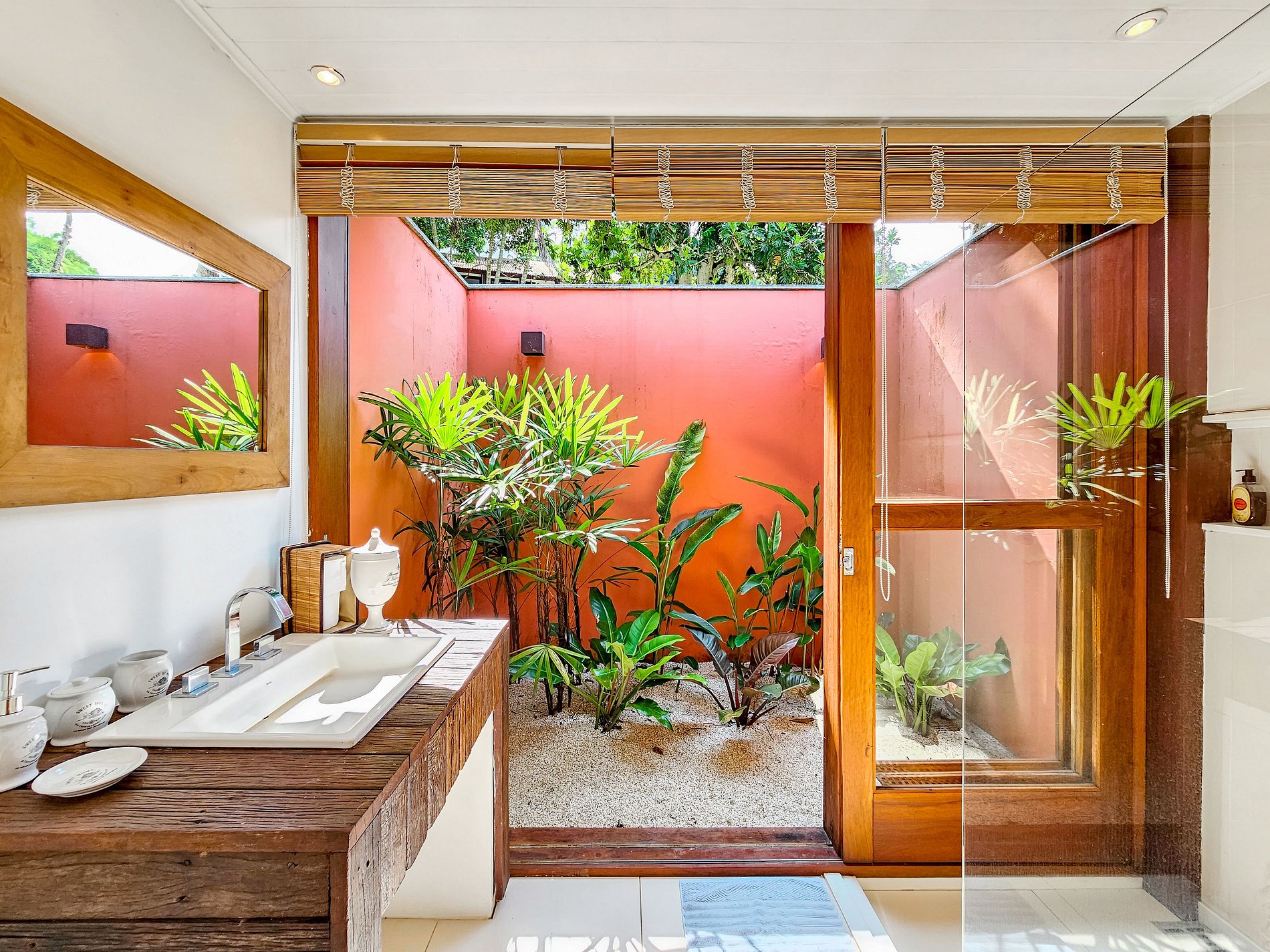 A Casa Praia interligada a casa principal com mais 2 suítes e 2 lavabos acomoda mais 4 hóspedes, totalizando 22 hóspedes no total.