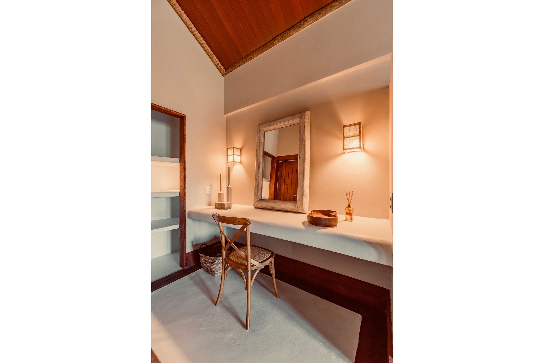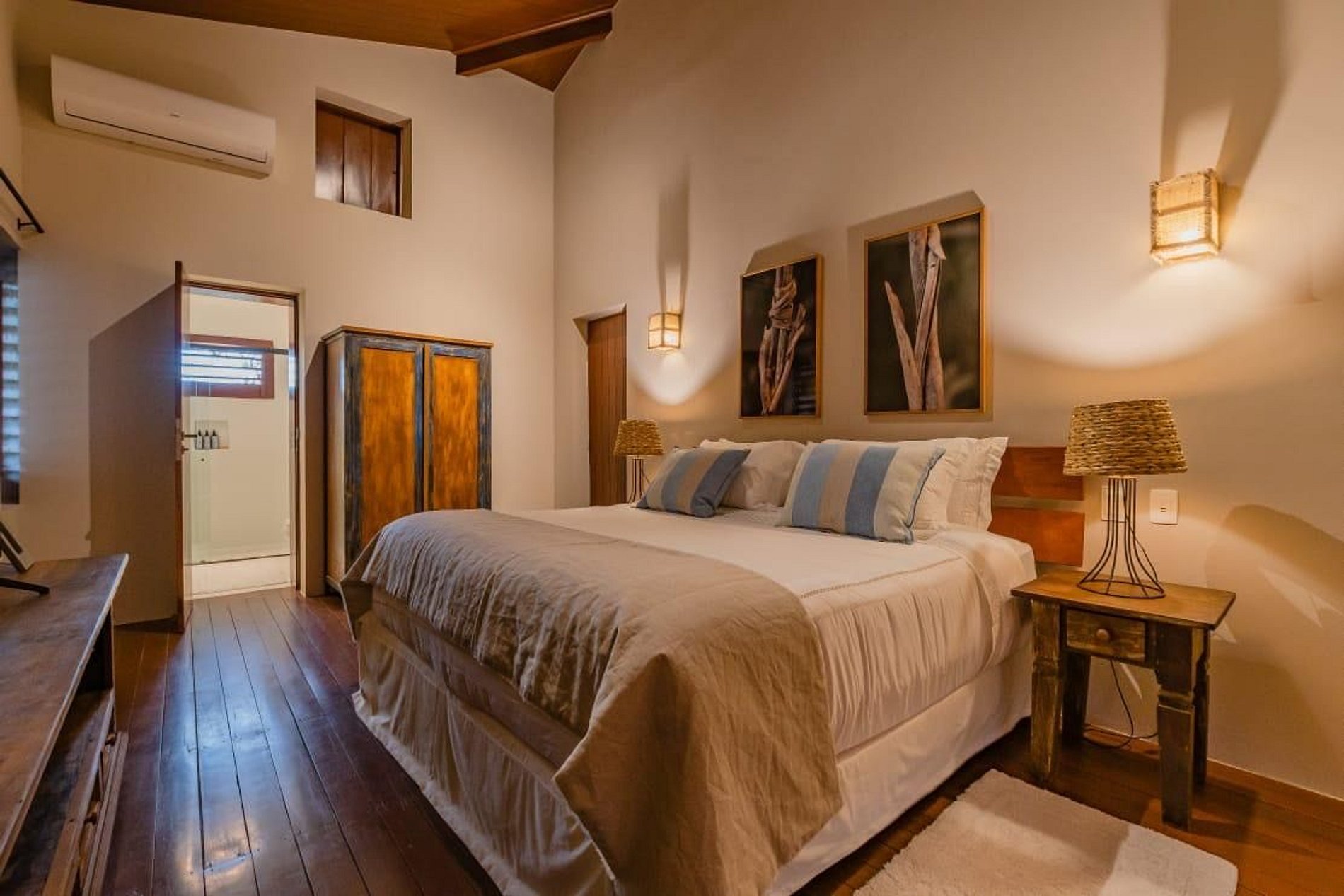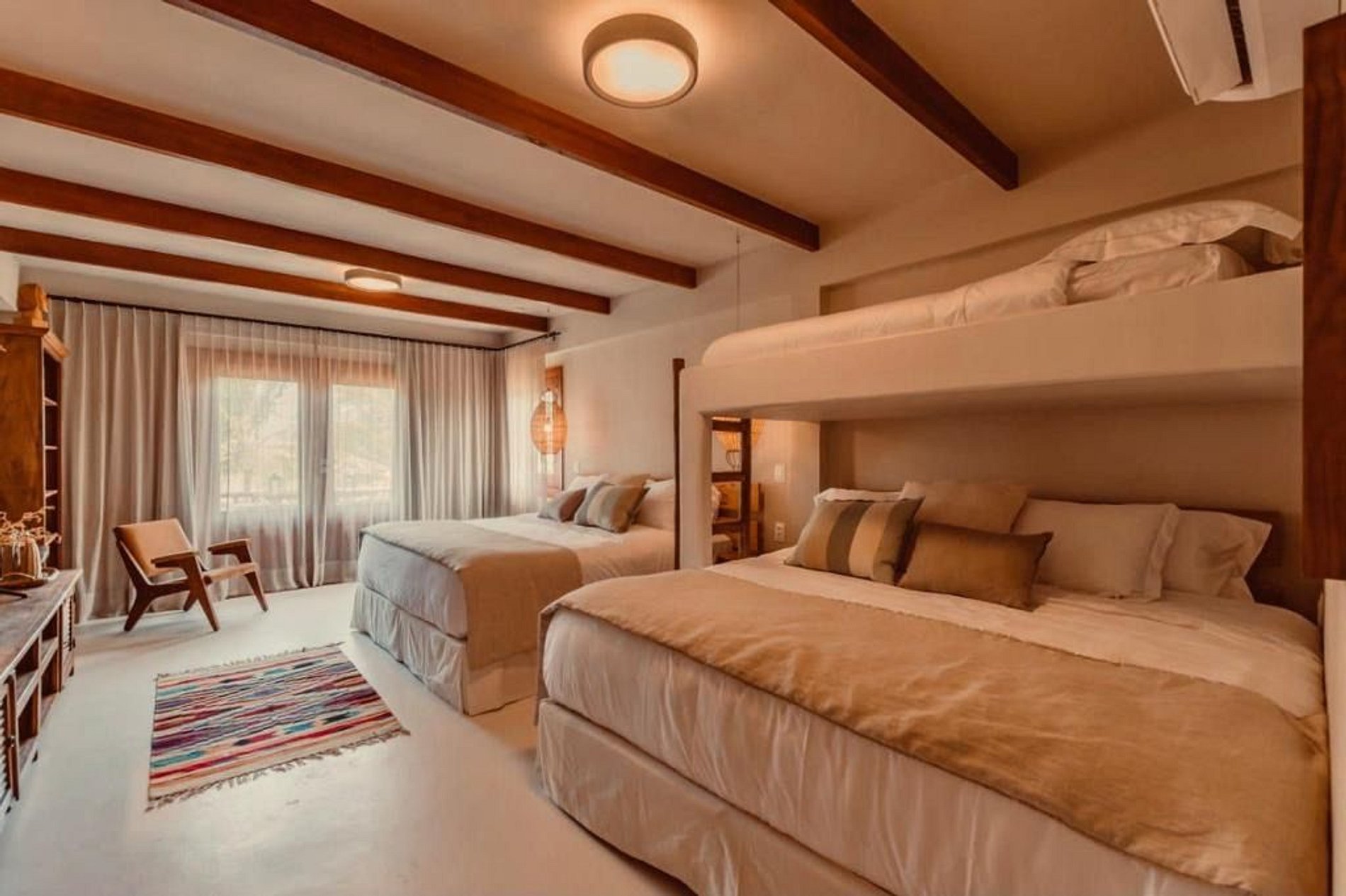 A casa possui 5 suítes e cada uma delas foi projetada para proporcionar conforto, equipadas com mobiliário de design, roupas de cama 600 fios, travesseiros de pluma, ar-condicionado, toalhas gigantes trousseau, amenities de banho, secador de cabelo e caixa de som alexa.