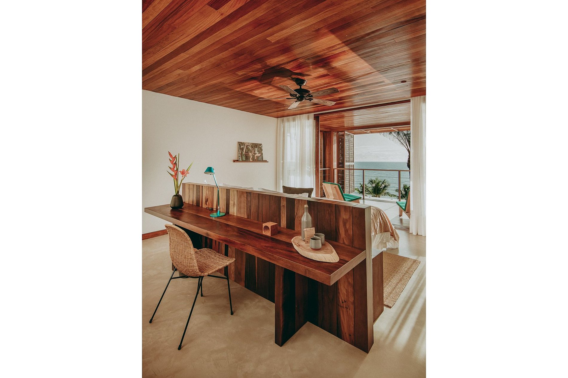 Iluminadas, arejadas e aconchegantes, The Barracuda Suites com 62m2 possuem vista para o mar e para a Mata Atlântica. São modernas e decoradas com tons e texturas naturais. Fotografias e retratos de Itacaré trazem para dentro das suítes um pouco da história da vida local.