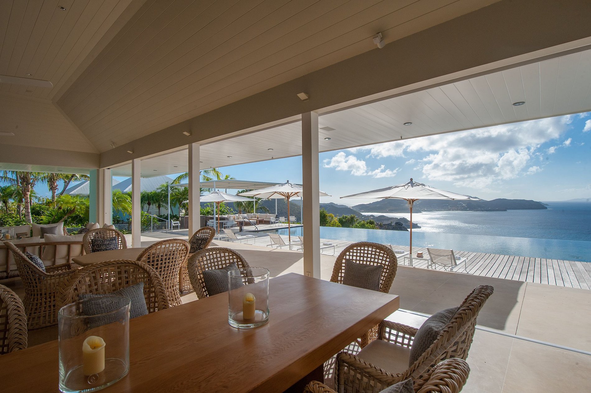 O caminho de pedra na entrada para Hill House leva a uma escolha: À sua direita, uma vista do Atlântico de cair o queixo, as ilhas de Anguilla Tintamarre são visíveis à distância. À sua esquerda, uma casa tão convidativa e elegante que rivaliza com a beleza natural da Caribe. Onde você olhará primeiro?Hill House é uma das obras-primas da ilha em termos de design. Com piscina de borda infinita, cercada por um deck de ipê amplo que chama a atenção para relaxar nas tardes de sol. Quando você anda através da sala de estar aberta, você percebe que poderia fazer esta casa o seu refúgio em St. Barth. Espaçosos com assentos confortáveis para vinte ou mais.