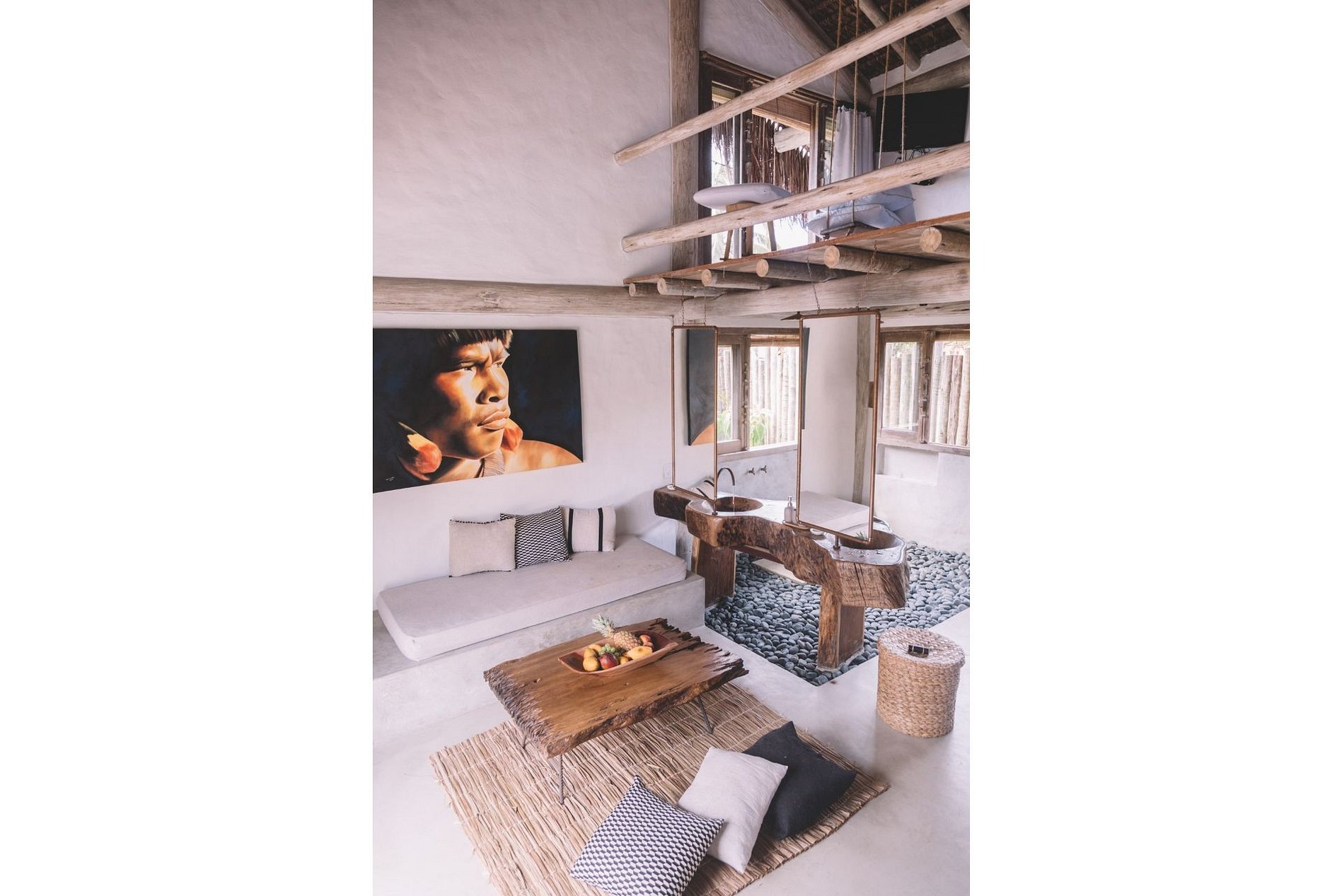 Aqui se pode sentir e viver a experiência de estar em um lugar onde o rio se encontra com o mar, nativos, índios e turistas convivem em harmonia, hospedando-se em uma vila de luxo em meio a simplicidade. Desde o projeto inicial, há cinco anos, priorizamos e valorizamos os artesãos locais para concepção do projeto, construção e decoração, valorizando sempre a cultura local. Exemplo disso, até hoje, todos nossos colaboradores moram e são da aldeia Pataxó.