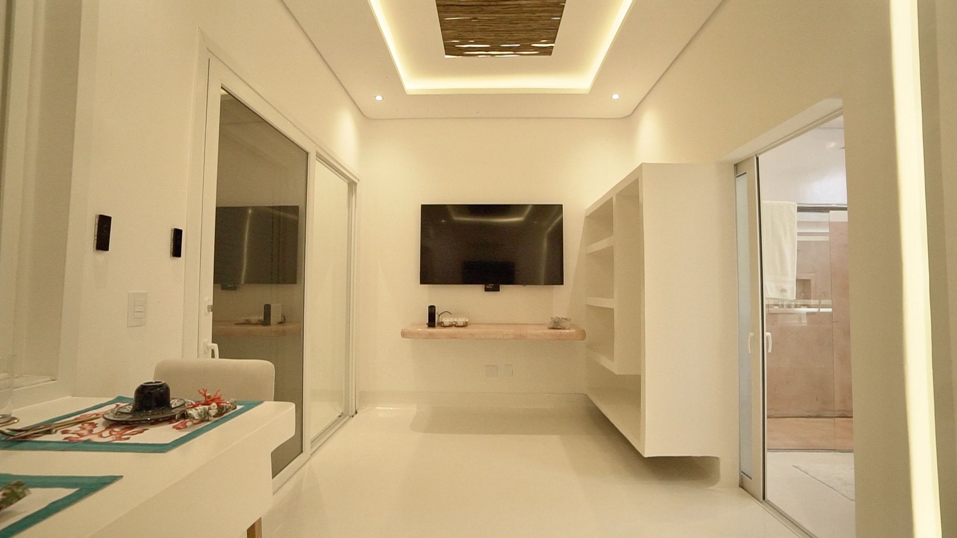 É uma casa artesanal, sem paredes. São 6 suítes equipadas com roupas de cama 600 fios, chaise longue espaçosa, TV com canais à cabo, frigobar e cafeteira Nespresso.