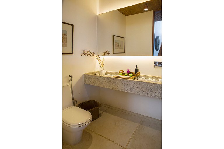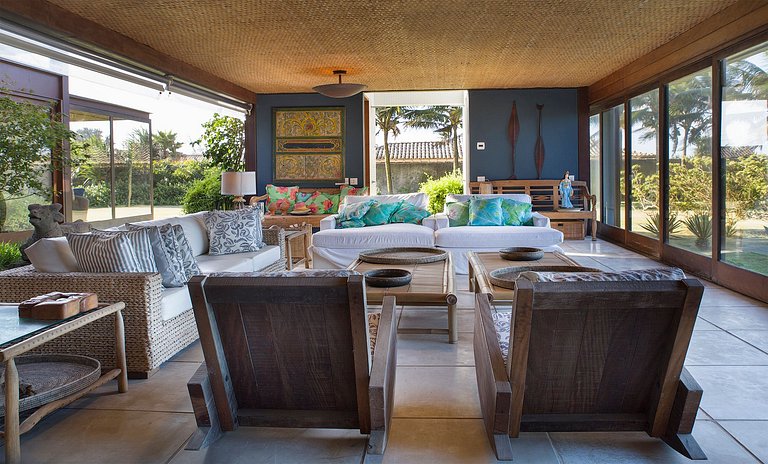Totalmente equipada, a casa oferece sete amplas suítes com ar condicionado e vista para o mar ou para a natureza. Com três salas de estar, sala de tv e varanda acoplada com espaço gourmet que por sua vez conecta-se com a cozinha, faz desse lugar uma perfeita acomodação para a família e amigos. Escritório completo com internet de alta velocidade.