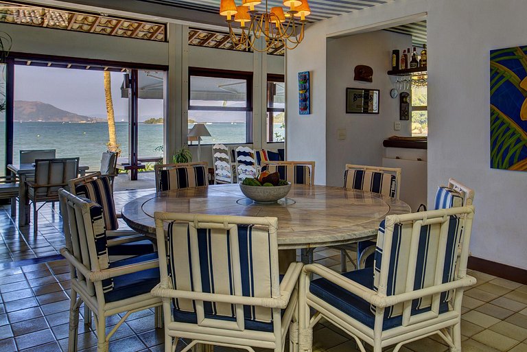 A casa está localizada no Condomínio Fazenda Mombaça, em frente à praia da Mombaça: área privativa e tranquila de Angra dos Reis.