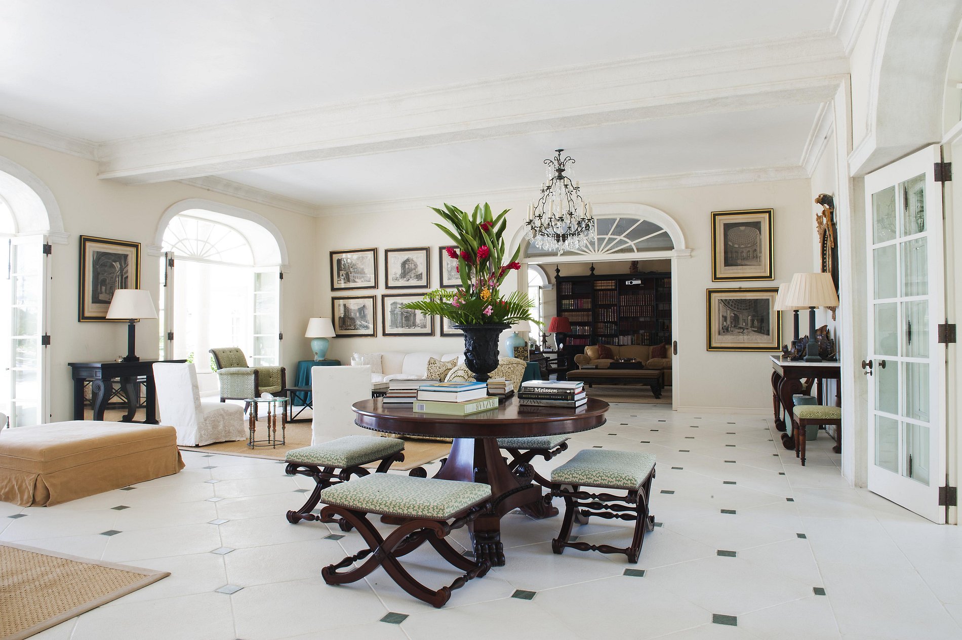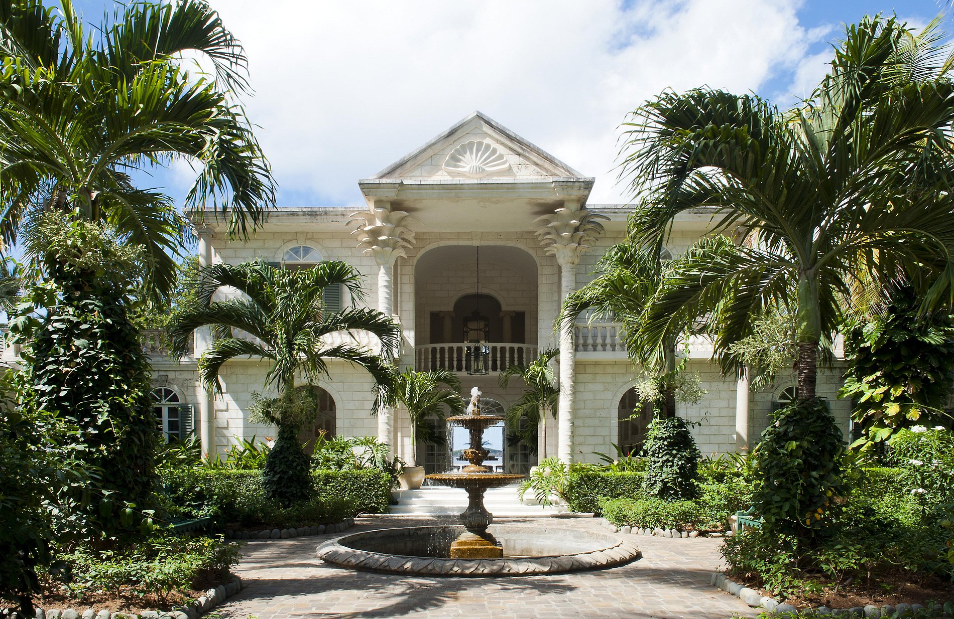 Perfeitamente situado em seis hectares de praia, a impressionante propriedade Villa Palms é dramática em seu cenário e fachada arquitetônica, mas acolhedora e confortável para seus hóspedes. A grande residência de estilo palladiano influenciada por Oliver Messel, foi construída em 1999 e amplamente renovada em 2011. A villa principal possui elegantes salas de estar e de jantar, enquanto a sala de estar adjacente e varandas exteriores oferecem espaço mais casual para entretenimento divertido.