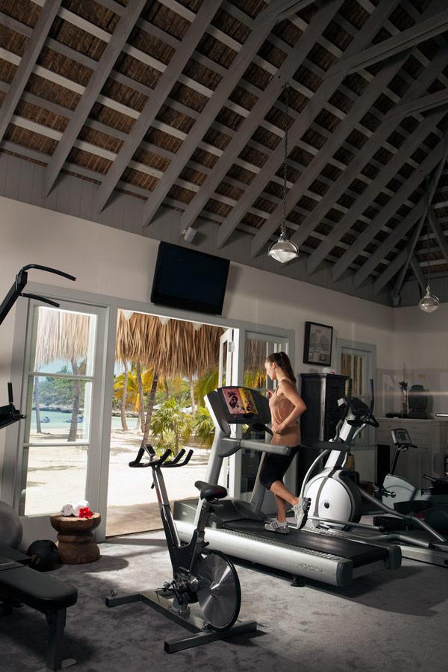 Se o sonho da ilha romântica é melhor cumprido por uma casa de telhado de palha, nossa casa de praia tem uma sala de estar e banheiro sem paredes.