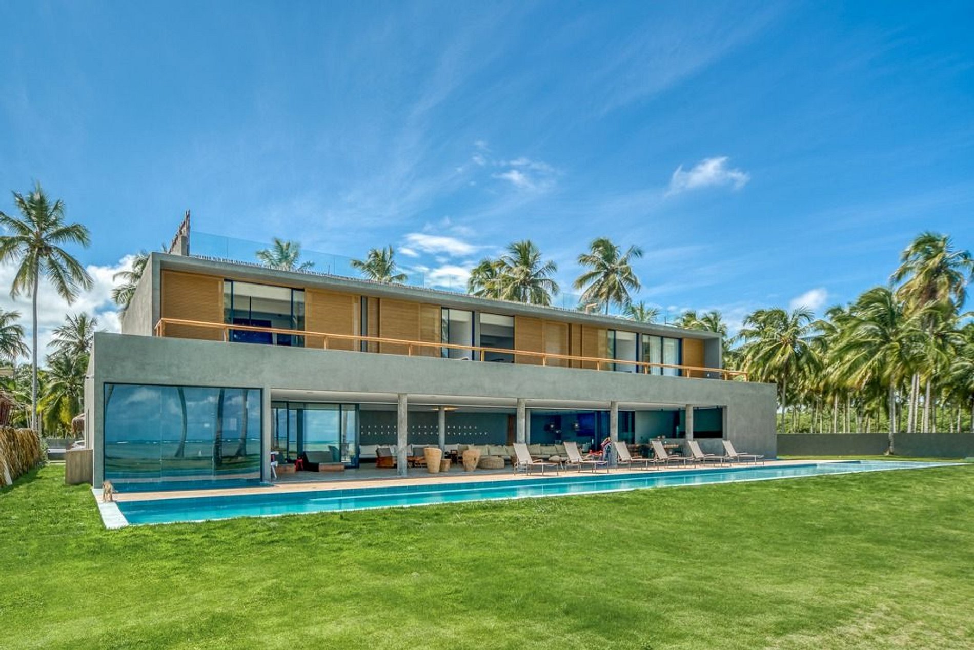 Com o total de 10 suites com - 10.000 metros de área total, pé na areia na Praia do Marceneiros com ampla Sala de Estar integrada com sala de jantar e 1 toilette.