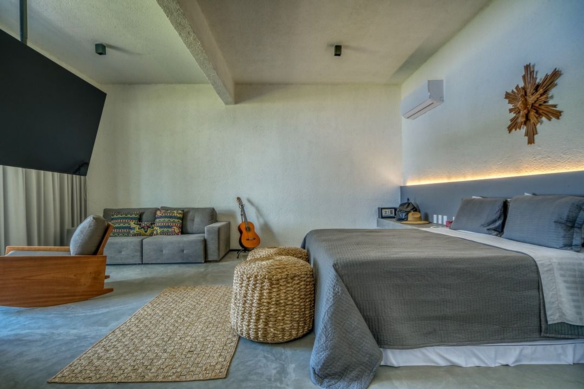 Todos os quartos equipados com cama king, ar condicionado, TV Smart.