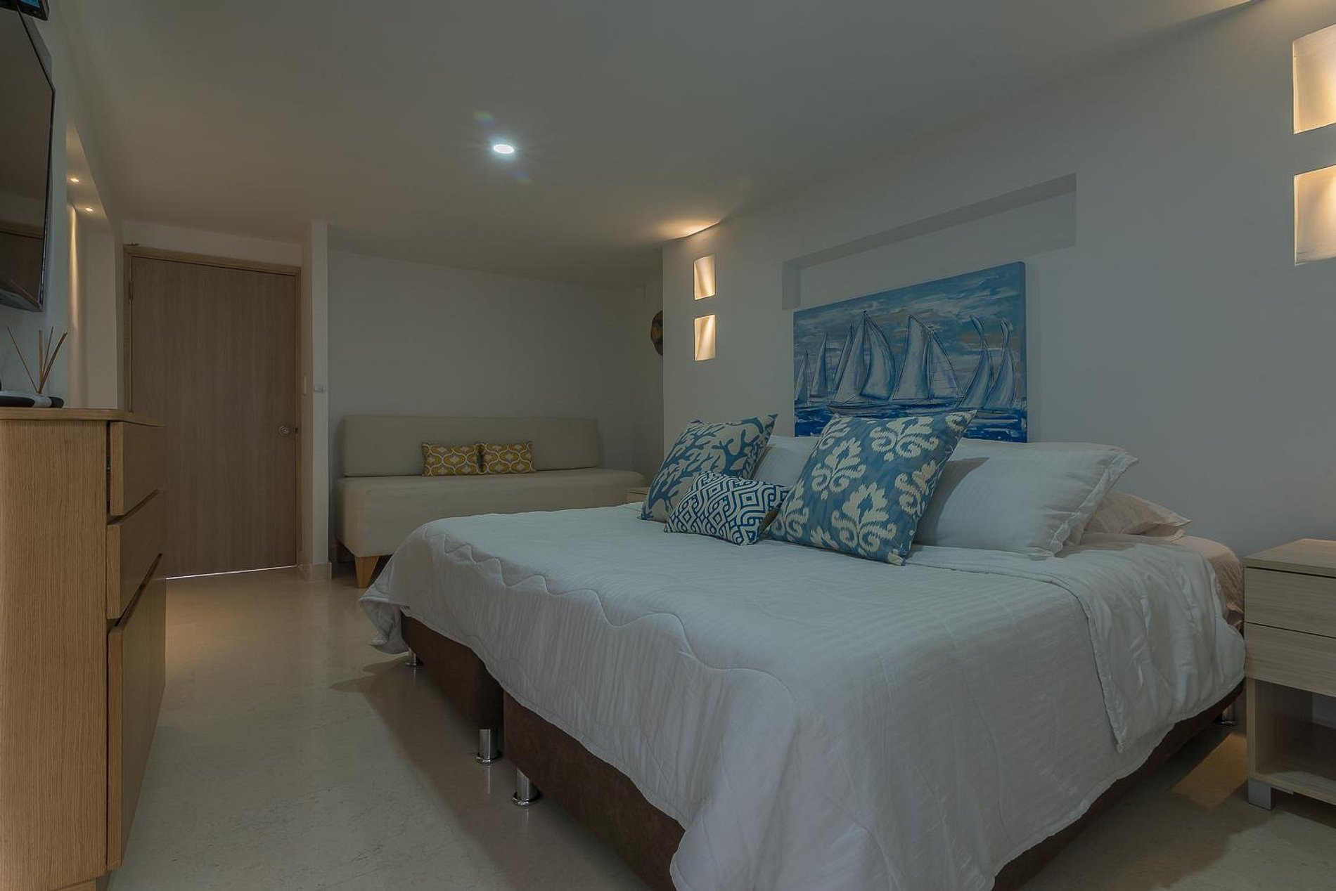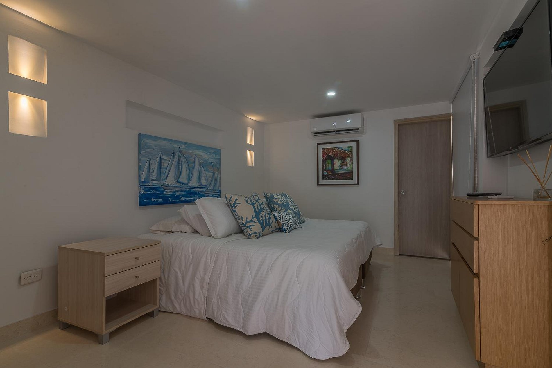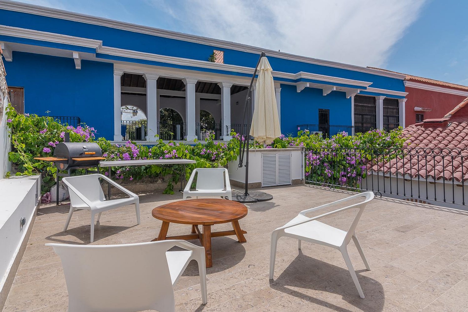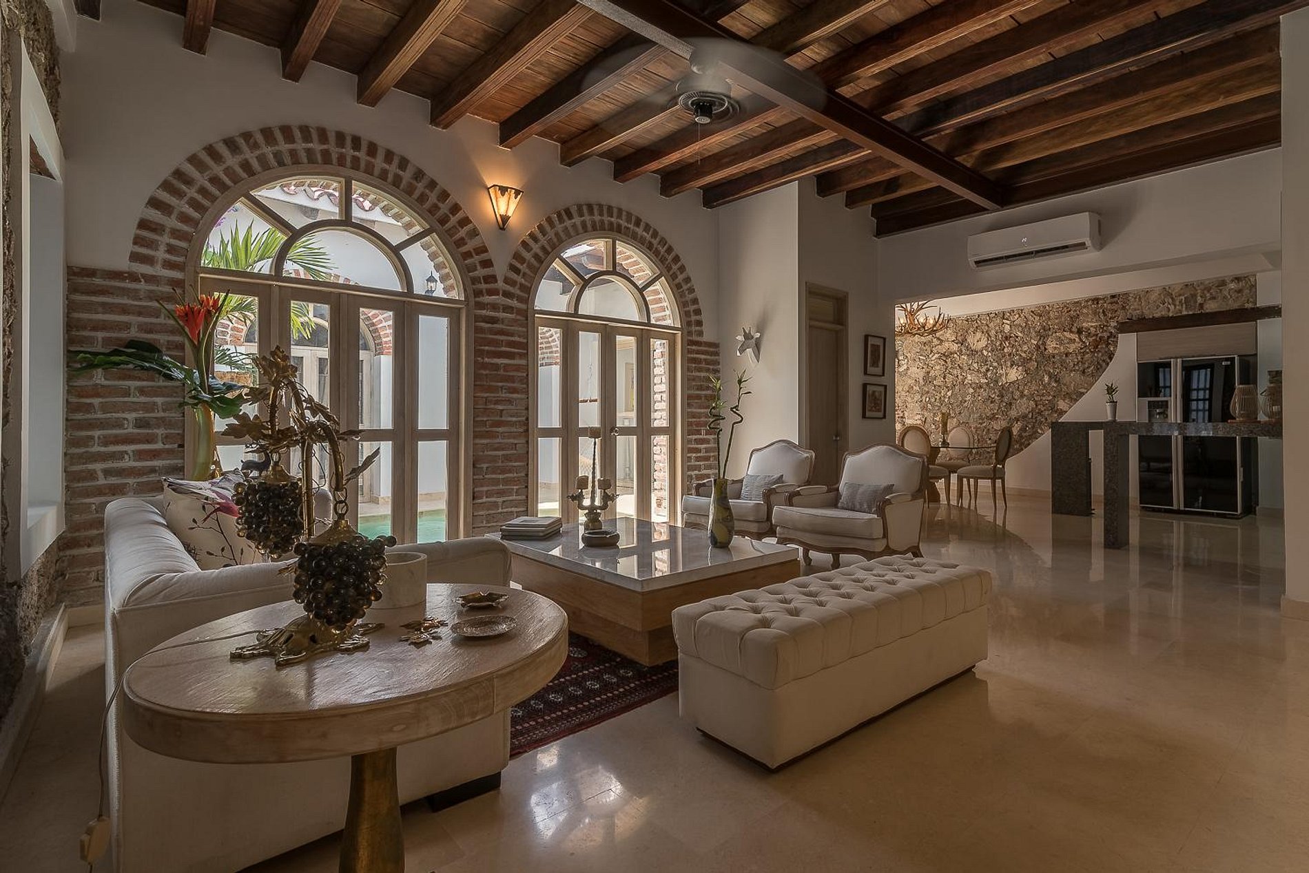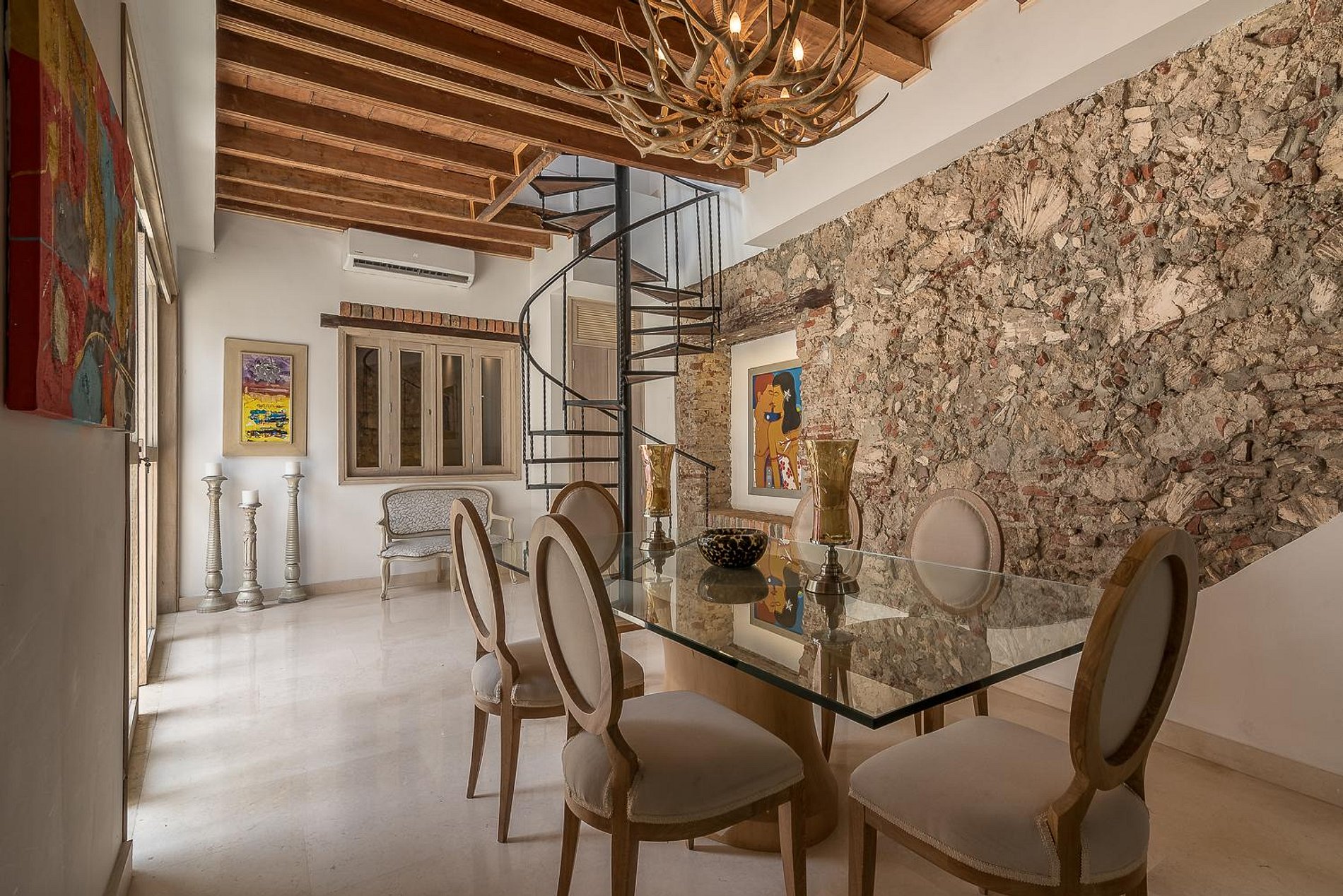 Esta radiante casa de estilo colonial de 3 quartos está perfeitamente localizada na histórica Cidade Velha de Cartagena. A casa tem um estilo eclético, combinando arte moderna com toques de decoração tradicional colombiana para alcançar um espaço de vida único e harmonioso. O branco domina a paleta de cores ao misturar azuis para destacar a arquitetura, inspirando-se nas vistas oceânicas que caracterizam a área.