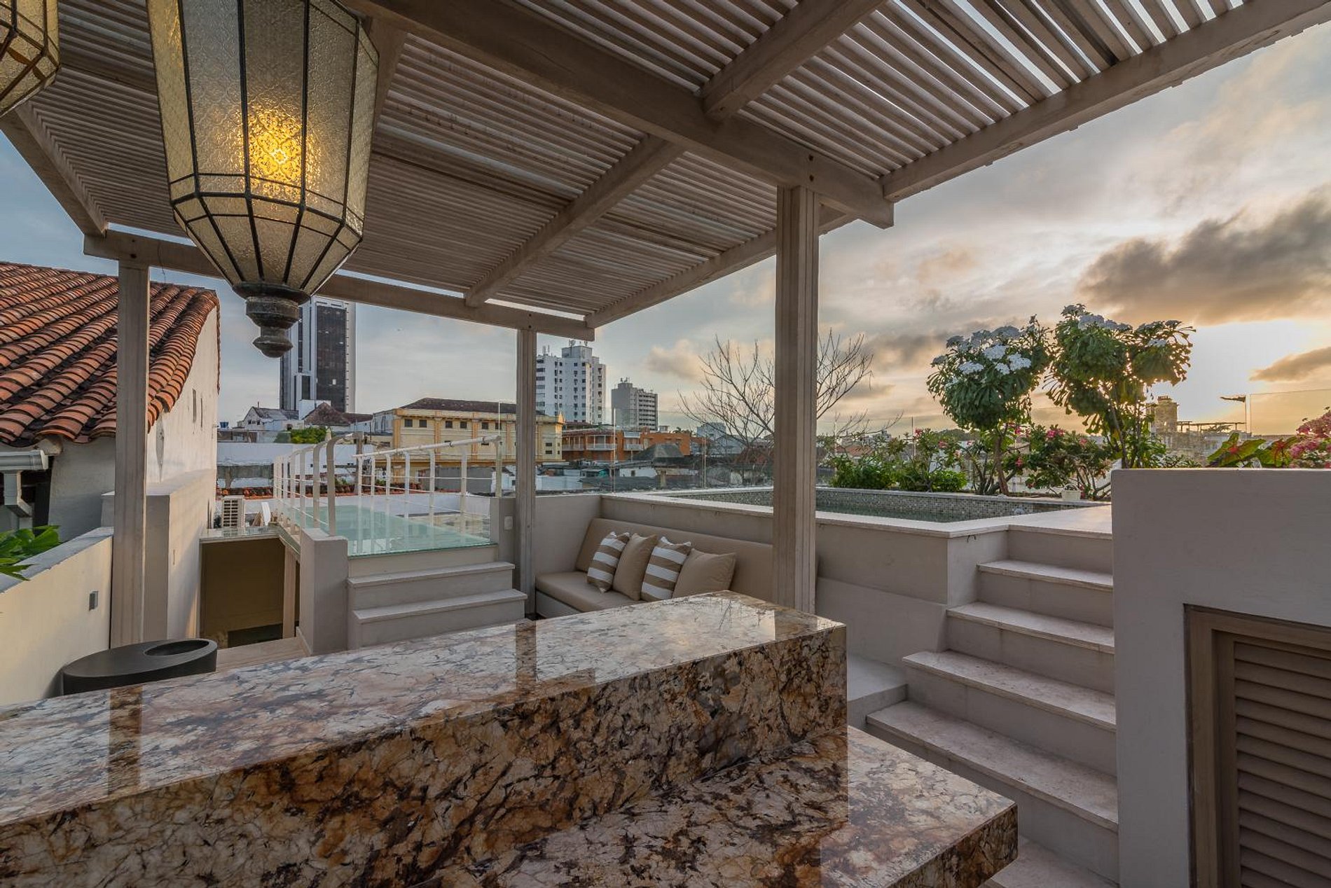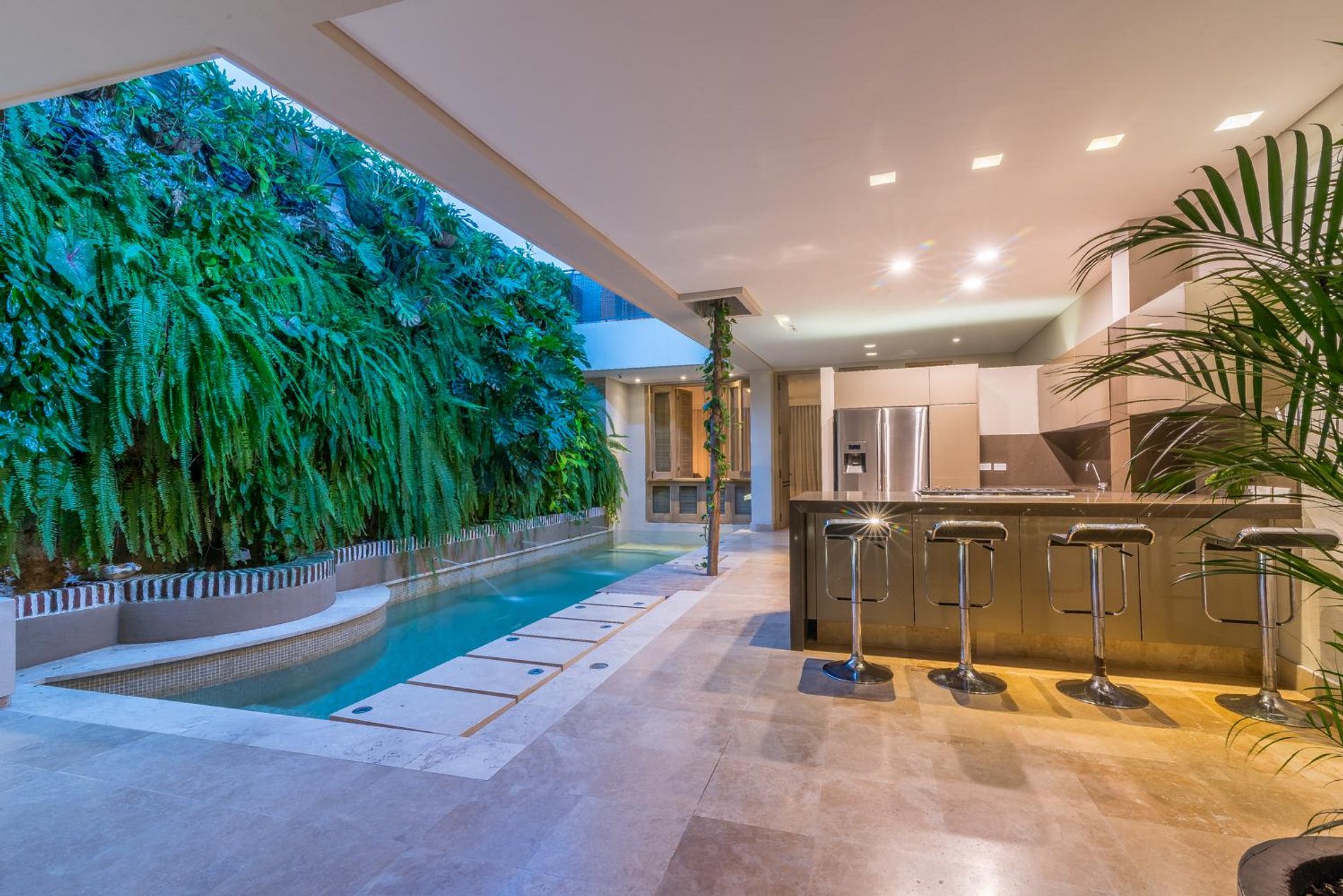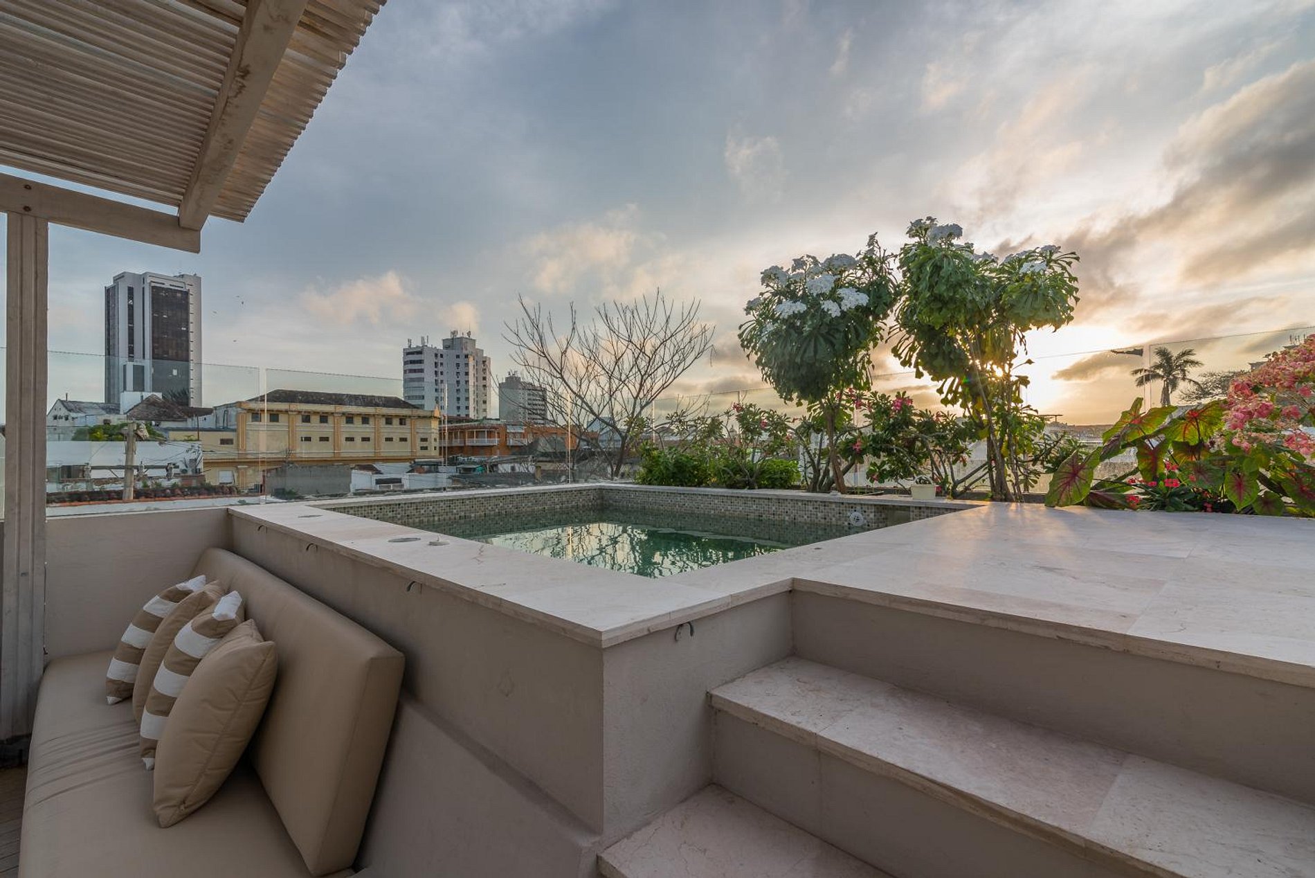 A casa recebe-o com uma grande sala de estar, uma cozinha totalmente equipada e uma piscina privada. O primeiro e o segundo quarto de banho têm camas queen-size, enquanto o terceiro quarto é exatamente como os outros, exceto que possui uma cama king-size. Para completar a experiência, a casa oferece um terraço privado com seu próprio jacuzzi onde você pode passar tempo de lazer com vista para as vistas deslumbrantes de Cartagena.