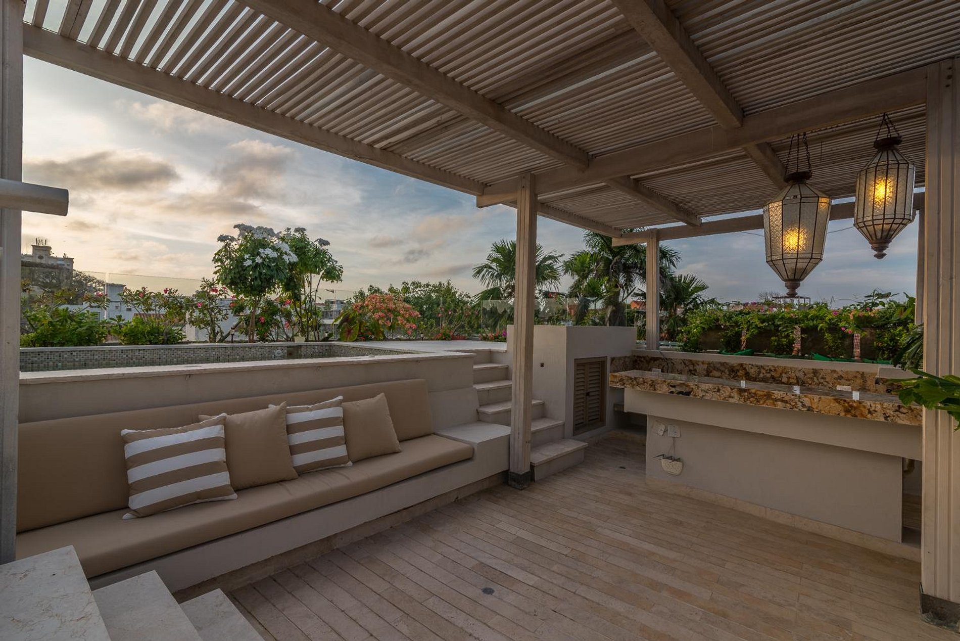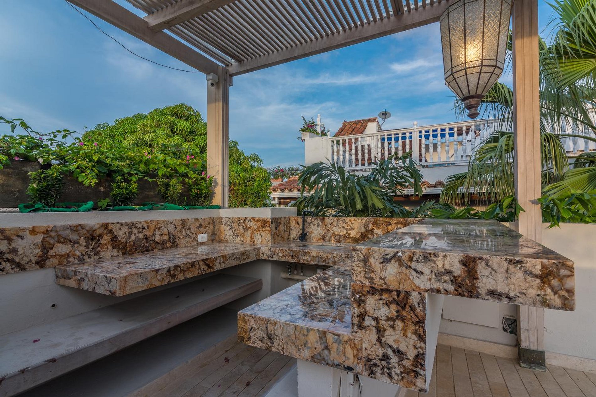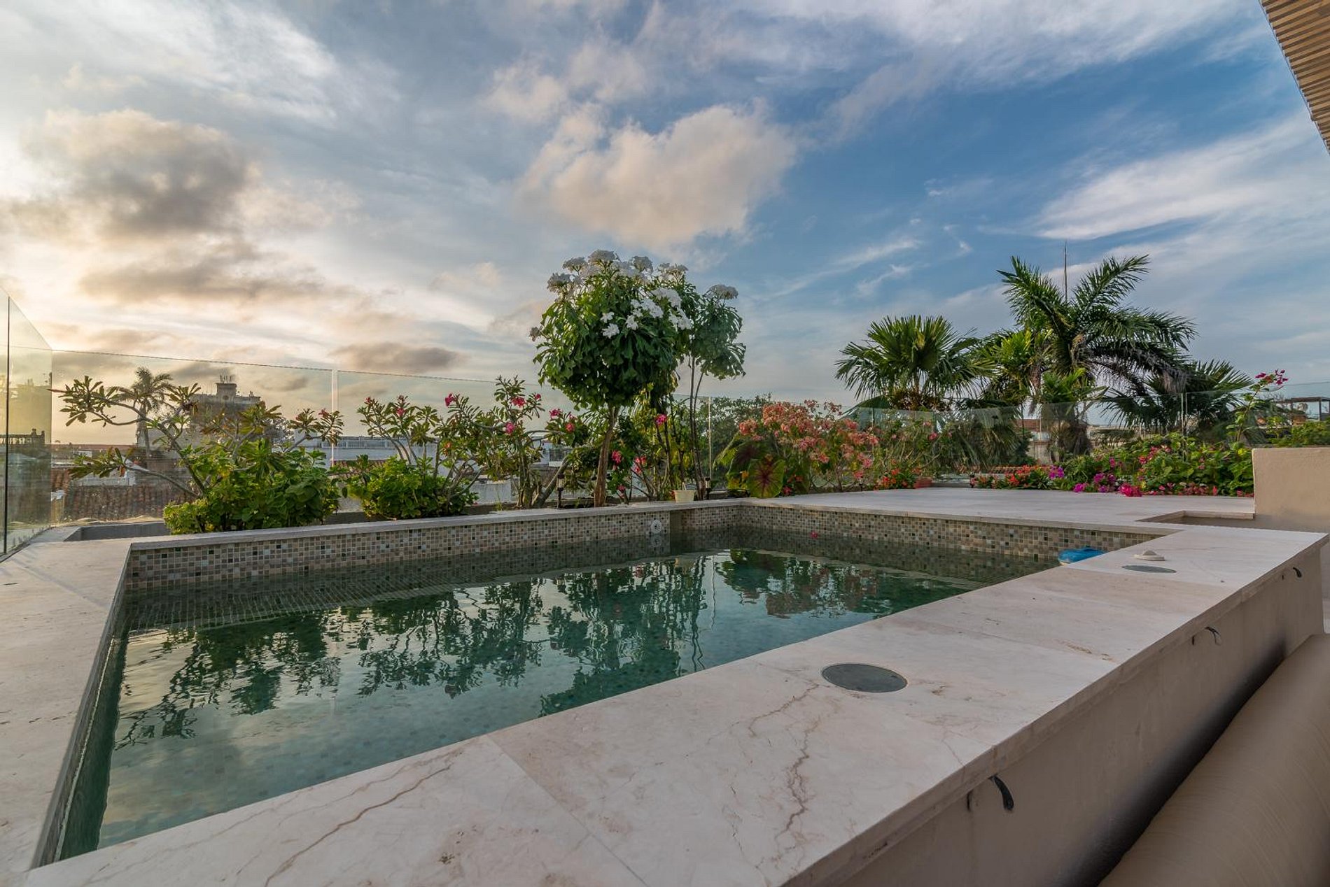 A casa recebe-o com uma grande sala de estar, uma cozinha totalmente equipada e uma piscina privada. O primeiro e o segundo quarto de banho têm camas queen-size, enquanto o terceiro quarto é exatamente como os outros, exceto que possui uma cama king-size. Para completar a experiência, a casa oferece um terraço privado com seu próprio jacuzzi onde você pode passar tempo de lazer com vista para as vistas deslumbrantes de Cartagena.