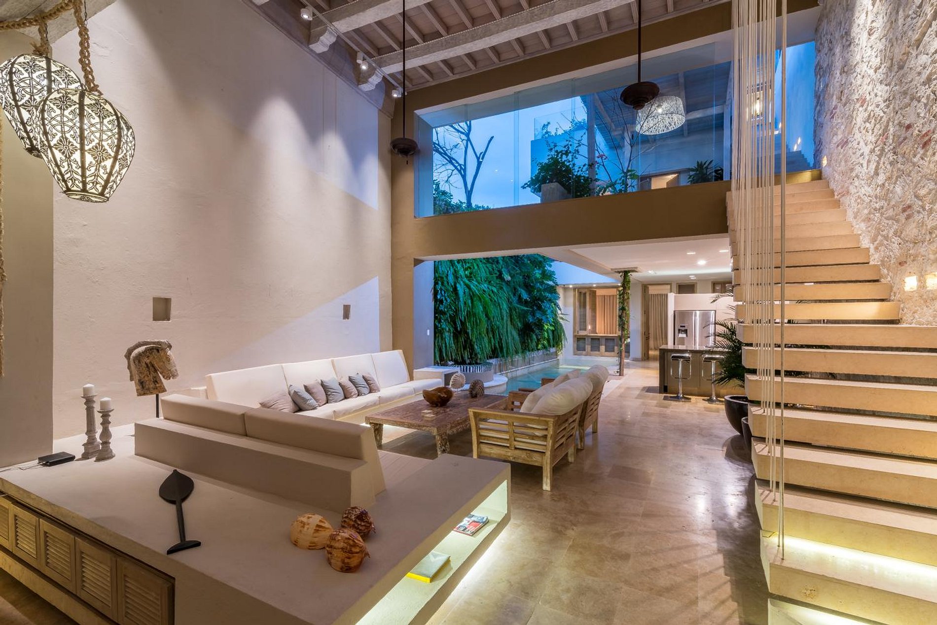 A casa recebe-o com uma grande sala de estar, uma cozinha totalmente equipada e uma piscina privada. O primeiro e o segundo quarto de banho têm camas queen-size, enquanto o terceiro quarto é exatamente como os outros, exceto que possui uma cama king-size. Para completar a experiência, a casa oferece um terraço privado com seu próprio jacuzzi onde você pode passar tempo de lazer com vista para as vistas deslumbrantes de Cartagena.