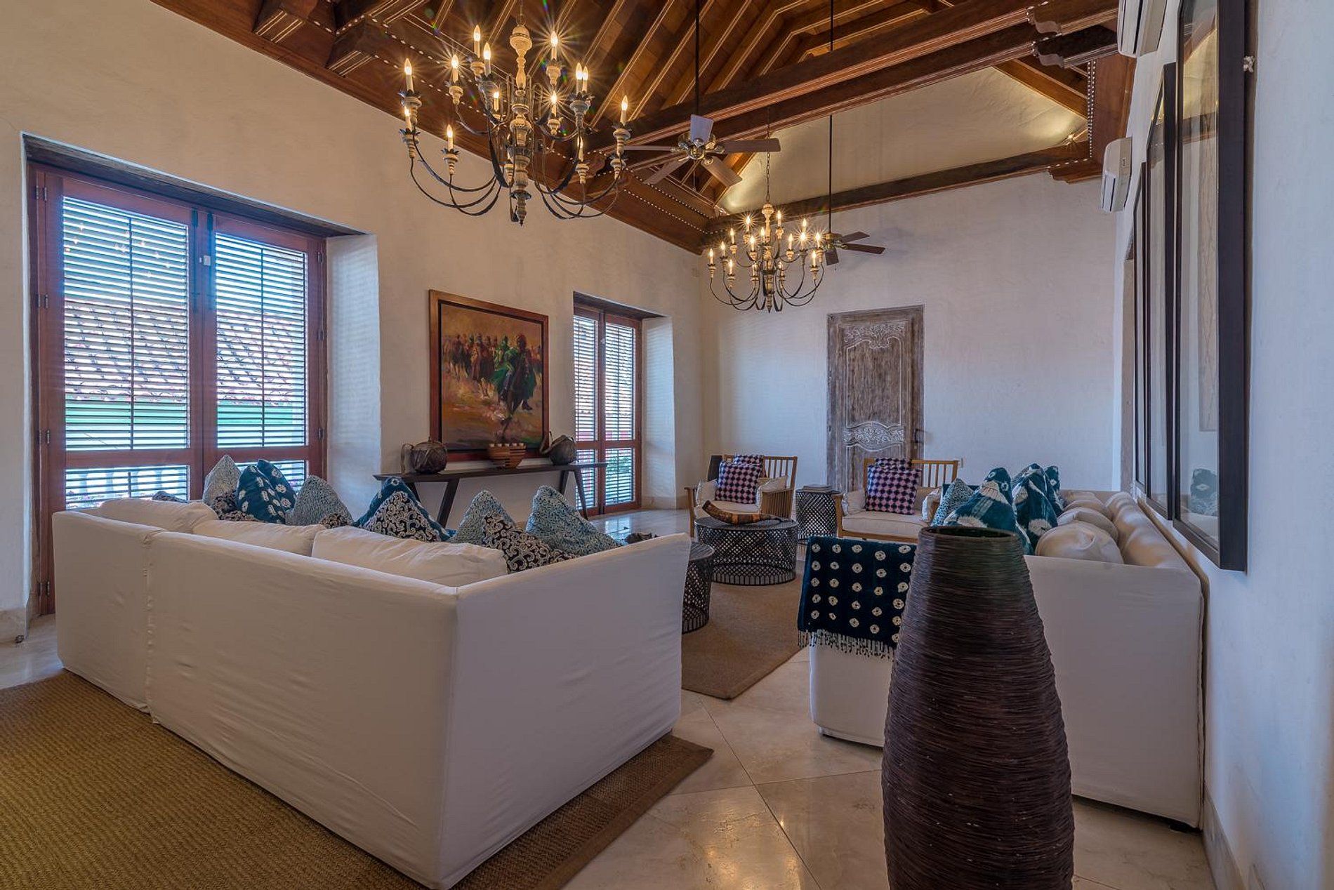Cada espaço da casa mantém a decoração original e a fachada única. Existem duas áreas de estar, tornando a casa especialmente acolhedora e convidativa para famílias ou grandes grupos. O mobiliário moderno adorna a sala de estar principal, juntamente com uma mesa de jantar de doze pessoas, além de uma sala de massagem. Todos os quartos incluem Wi-Fi, ar condicionado, camas confortáveis e casas de banho privadas bem projetadas.