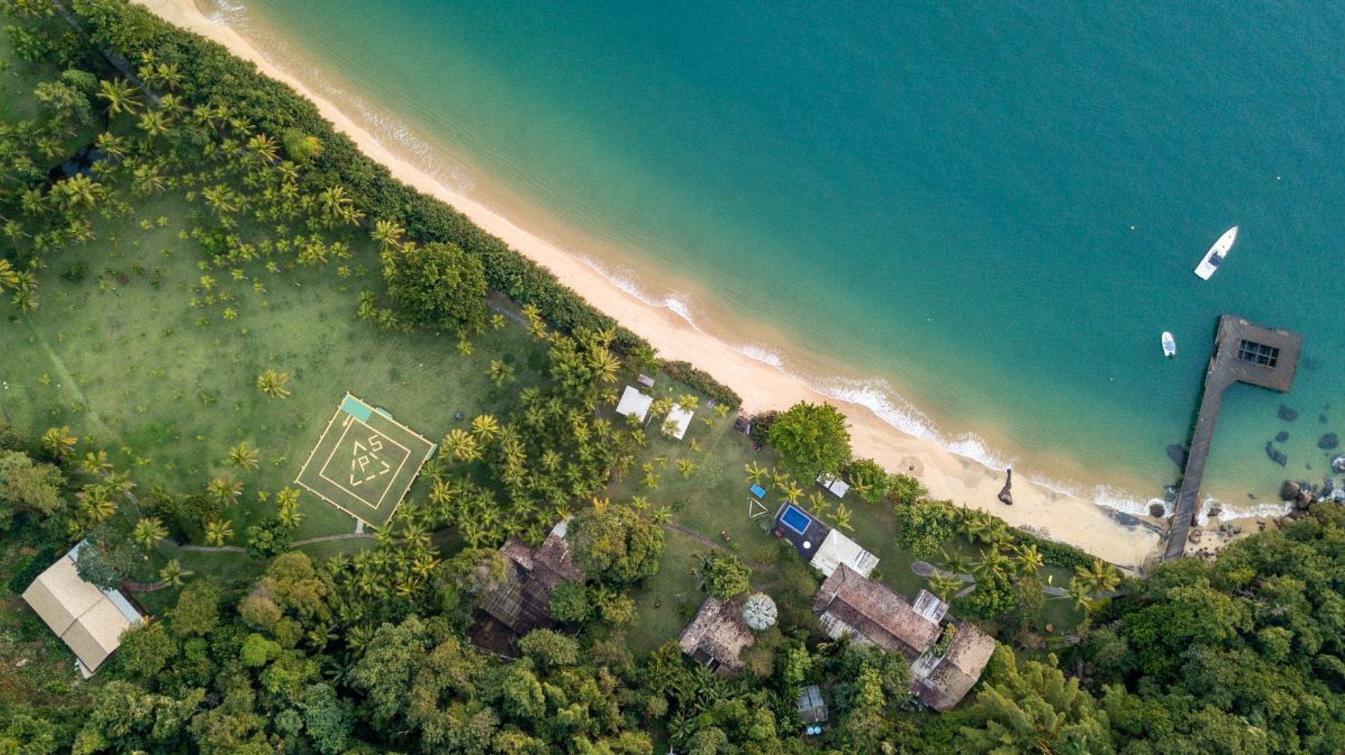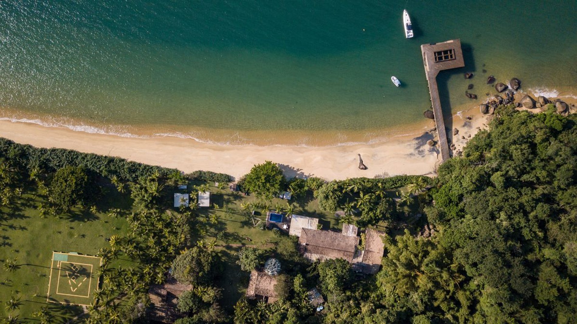 Entre as colinas verdes de Ilha Grande e atrás dos 400 metros de praia de areia branca encontra-se a propriedade espaçosa e encantadora da Praia do Iguassu.