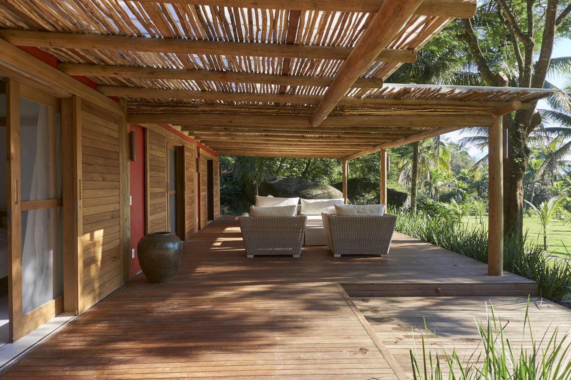 Entre as colinas verdes de Ilha Grande e atrás dos 400 metros de praia de areia branca encontra-se a propriedade espaçosa e encantadora da Praia do Iguassu.