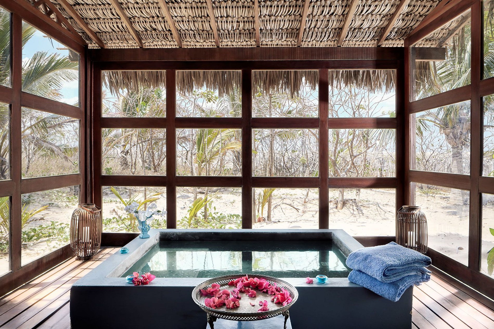 Composta por sete bangalôs em forma de palafita de madeira, sala de jantar, bar/lounge, cervejeira, freezer e áreas de estar em cima da água; tudo isto num espaço com 80.000 m2 em cima do mar. Acomoda confortavelmente 14 pessoas.