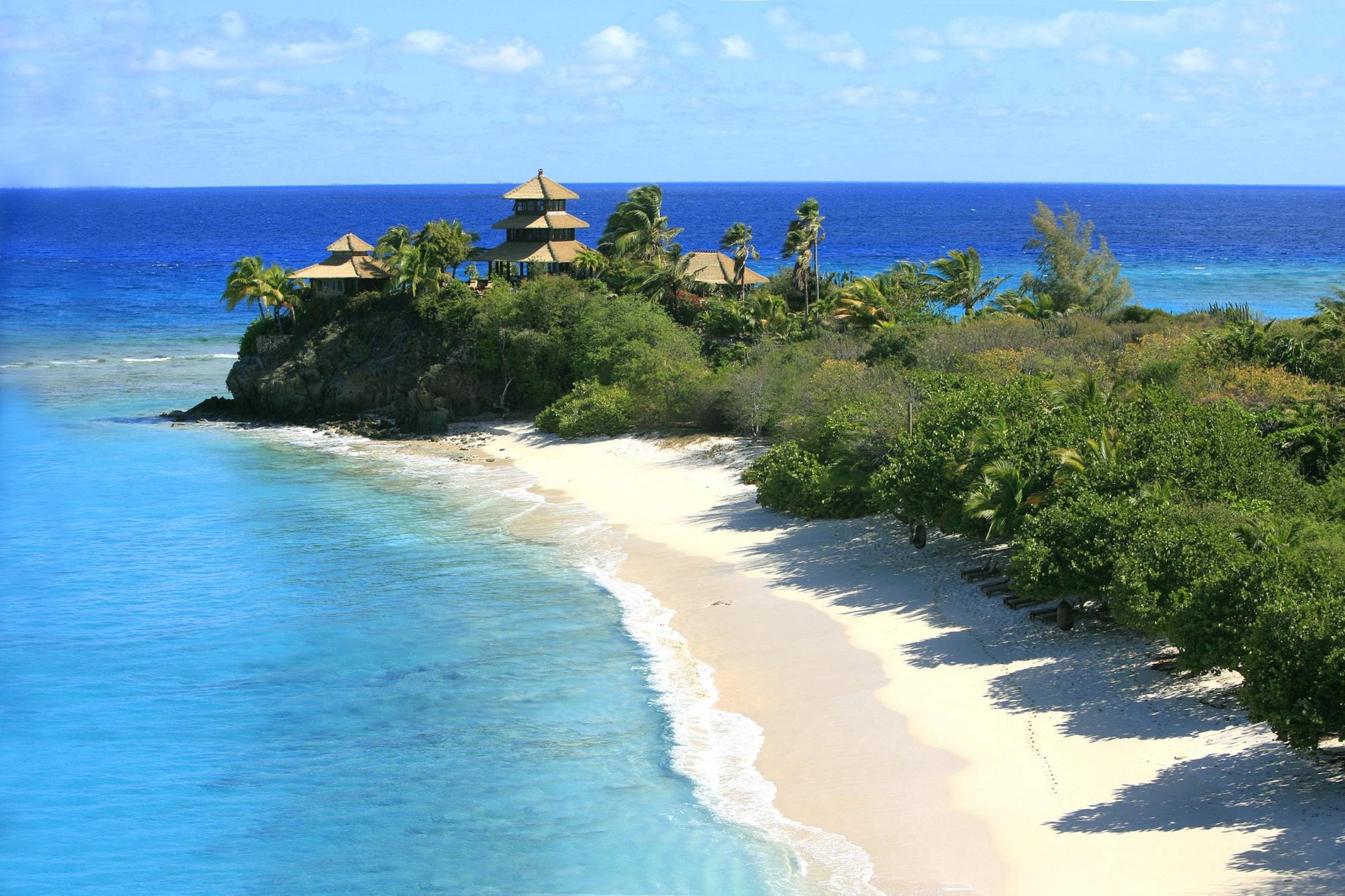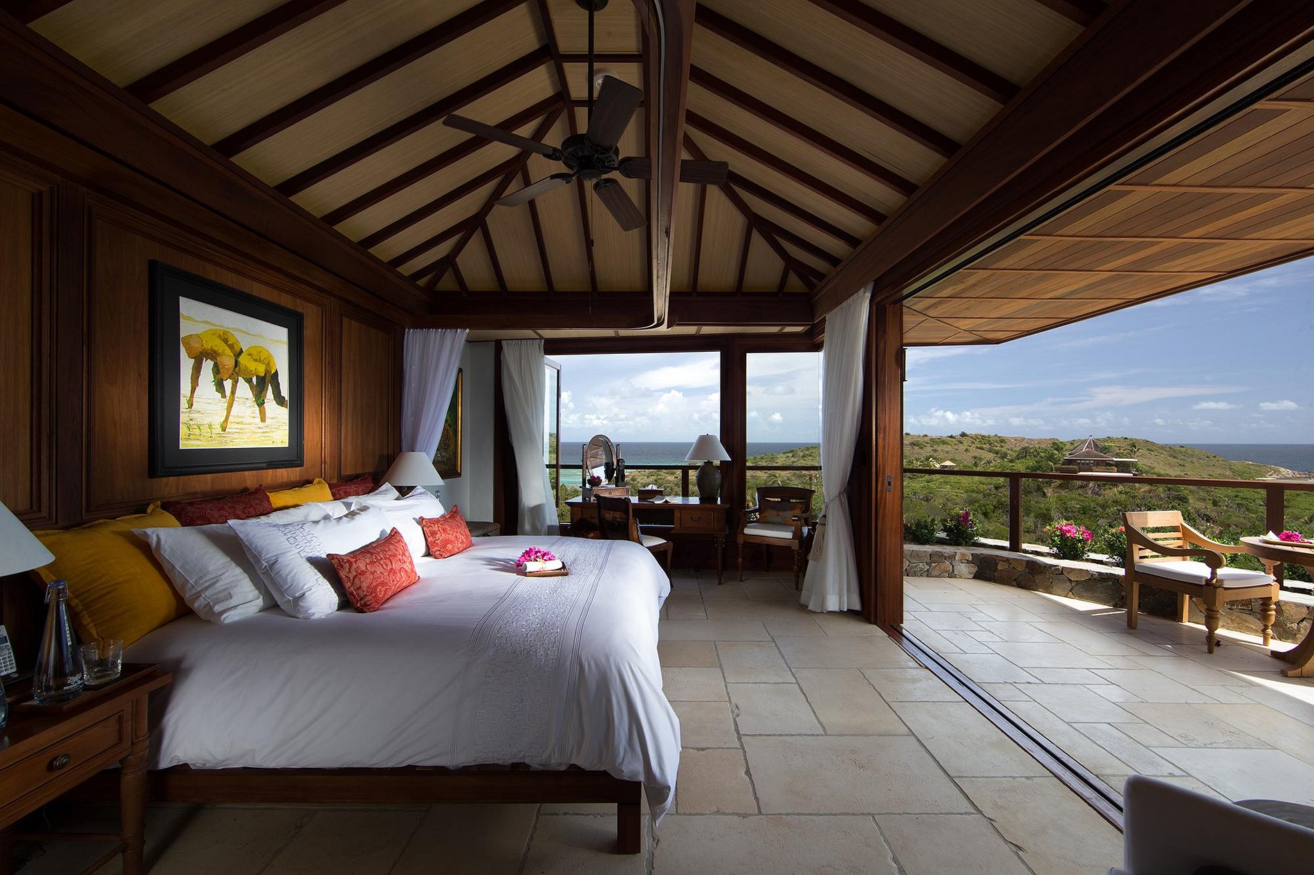 Misturando-se na paisagem tropical são oito belas casas balinesas que oferecem aos hóspedes vistas deslumbrantes sobre o oceano e privacidade. Mesmo no centro da ilha, Temple House, uma suite com piscina infinita, salão e cozinha separados e o Love Temple privado, cada um dormindo dois adultos. Acomodação adicional está disponível em The Great House, uma espaçosa villa balinesa com estilo ao ar livre, que possui incríveis vistas panorâmicas sobre o Caribe, o Atlântico e as ilhas vizinhas.