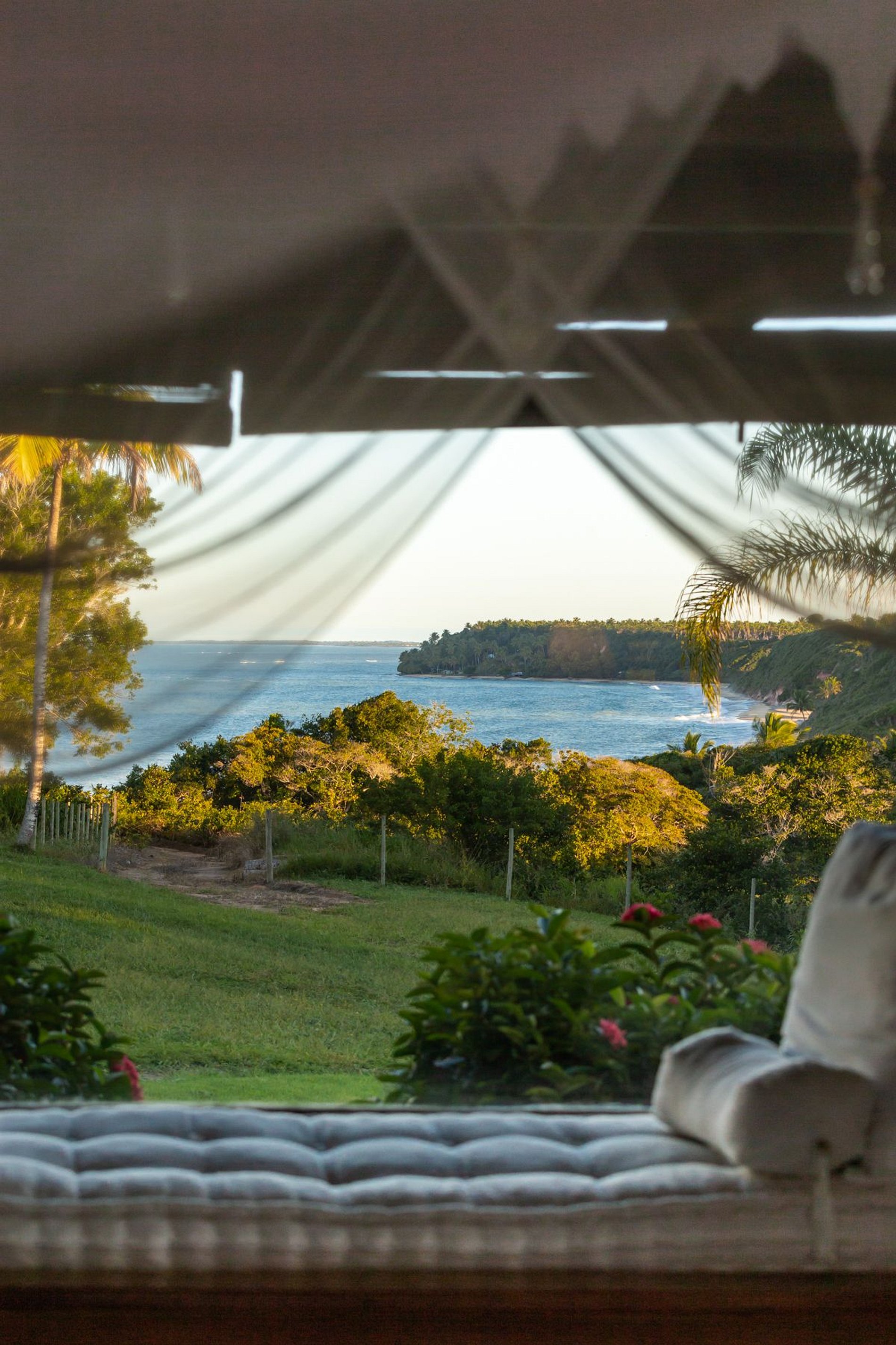 Com apenas quatro bungalows e uma casa rústico-chique a arquitetura é pra lá de elegante, em meio a um jardim de coqueiros e uma vista deslumbrante para o mar, avistando-se a Ponta de Juacema e Corumbau.