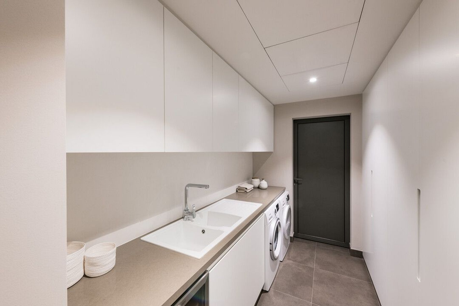 279 m2 de deck externo e área da piscina. Área de jantar coberta para 8 pessoas com cozinha e piscina infinita de 22 m2.