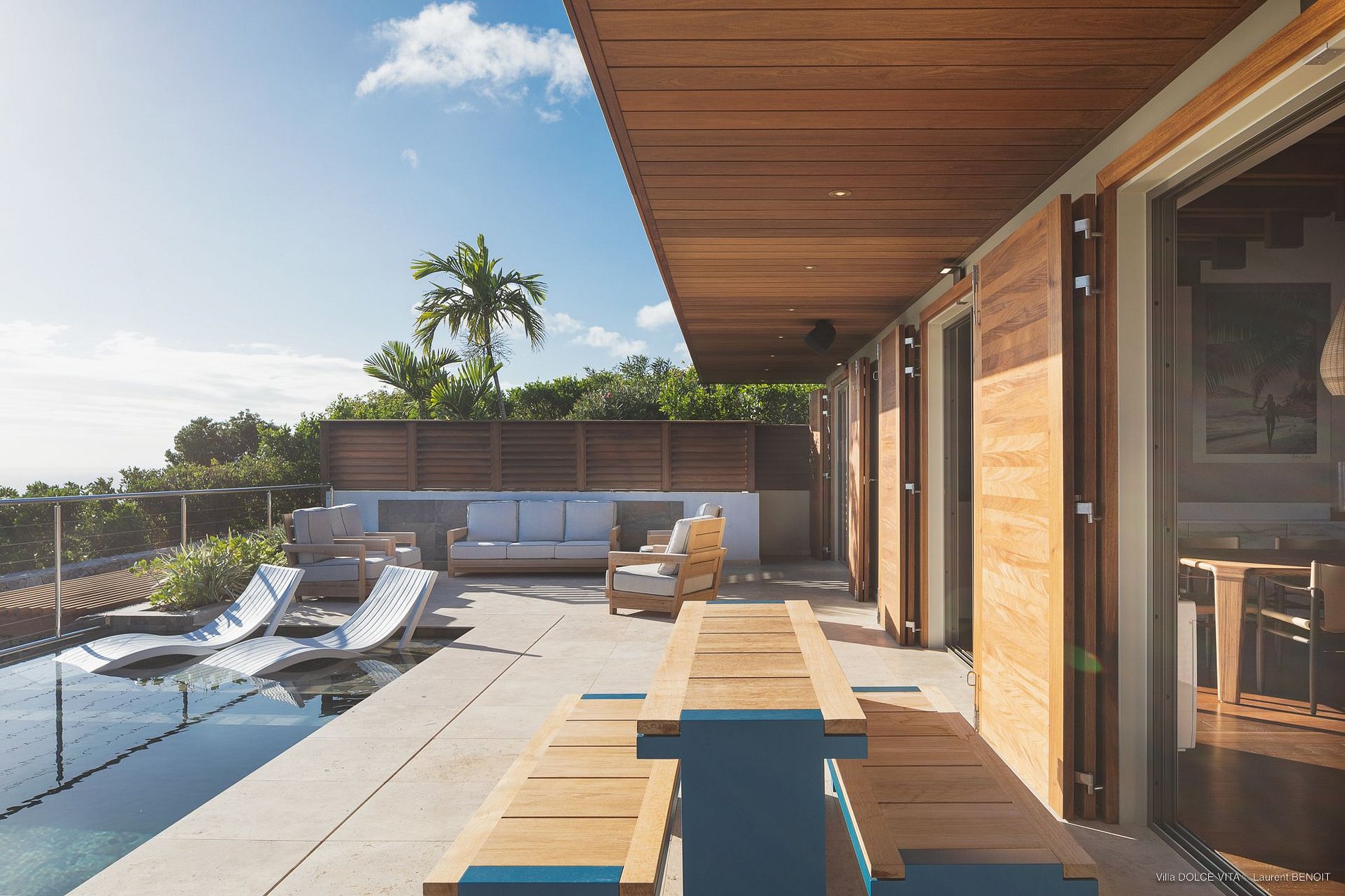 A Dolce Vita é uma Casa de luxo de recém-construídda que se destacada pelo seu design elegante, moderno, espaçoso e acolhedor, bem no estilo de St. Barth. Sua arquitetura é revestida de madeira e decorada com móveis confortáveis, colaborando para o desfrute da dolce vita!