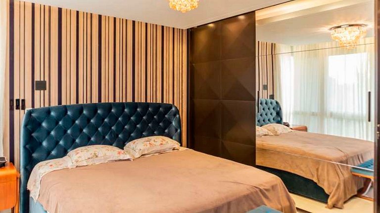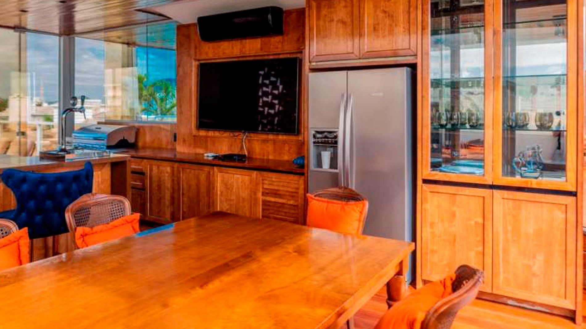 Possui 6 suítes, sendo 3 suítes com cama box casal e 3 suítes com 2 camas box solteiro. Amplo living, sala de jantar integrada com a cozinha gourmet e player center.