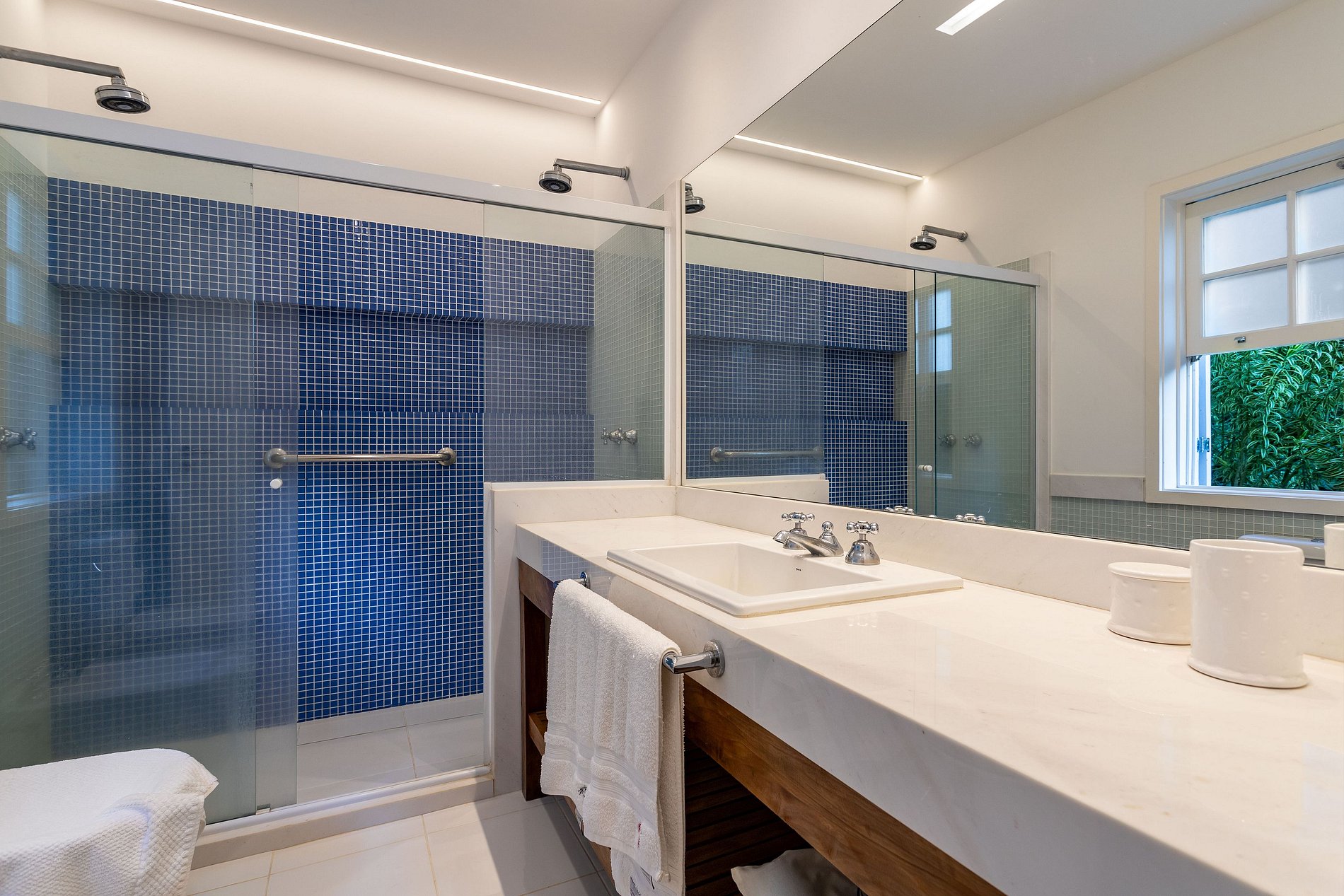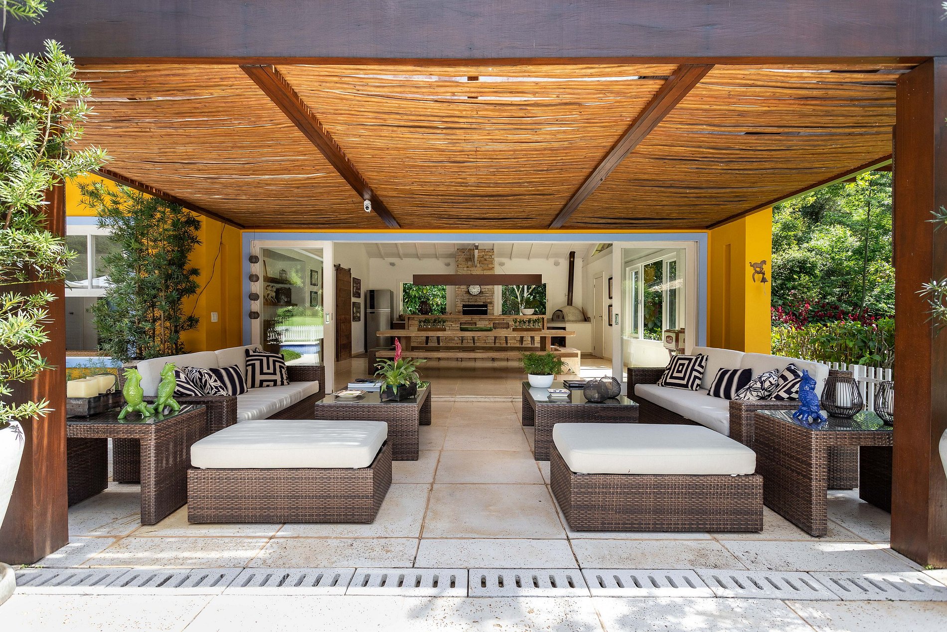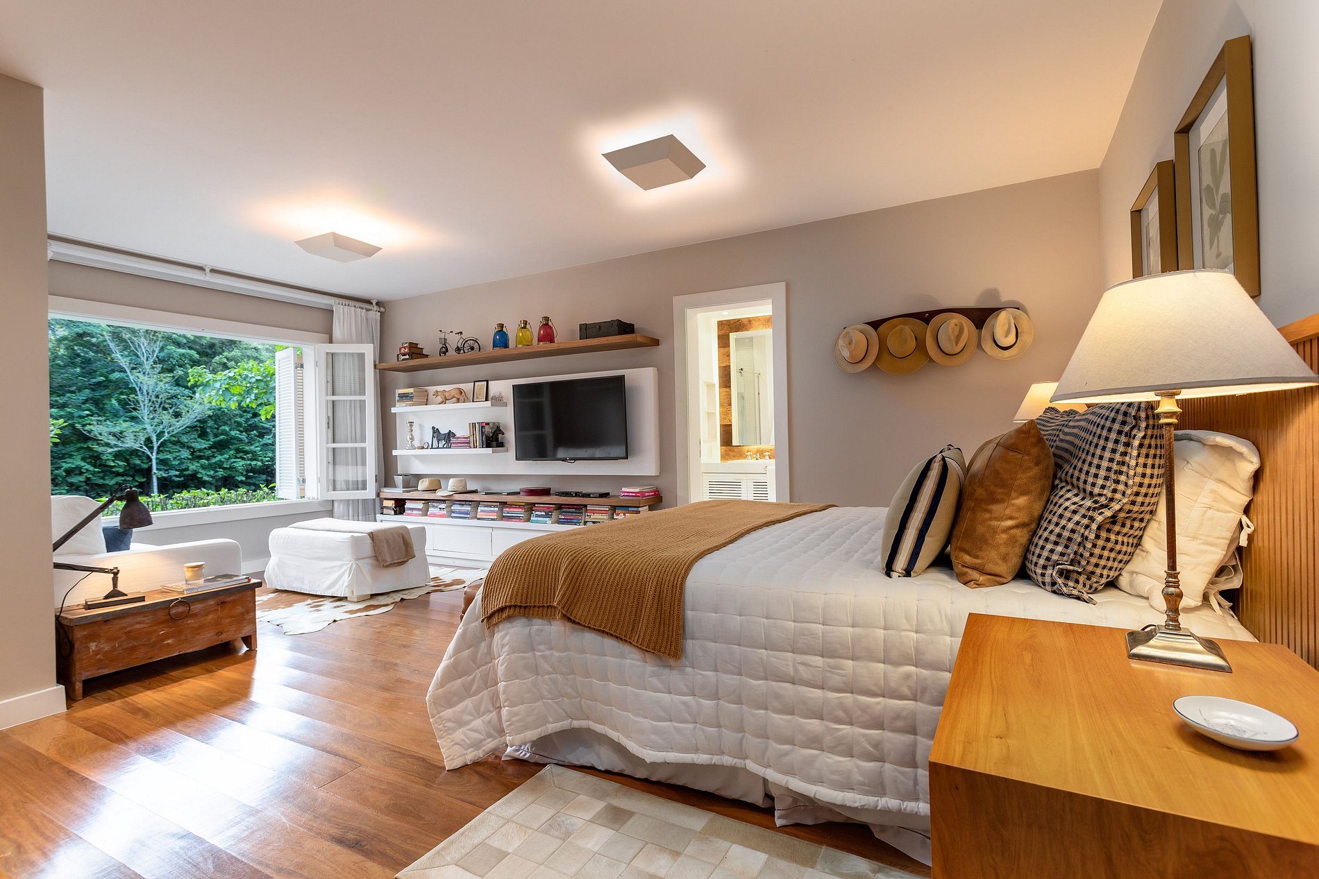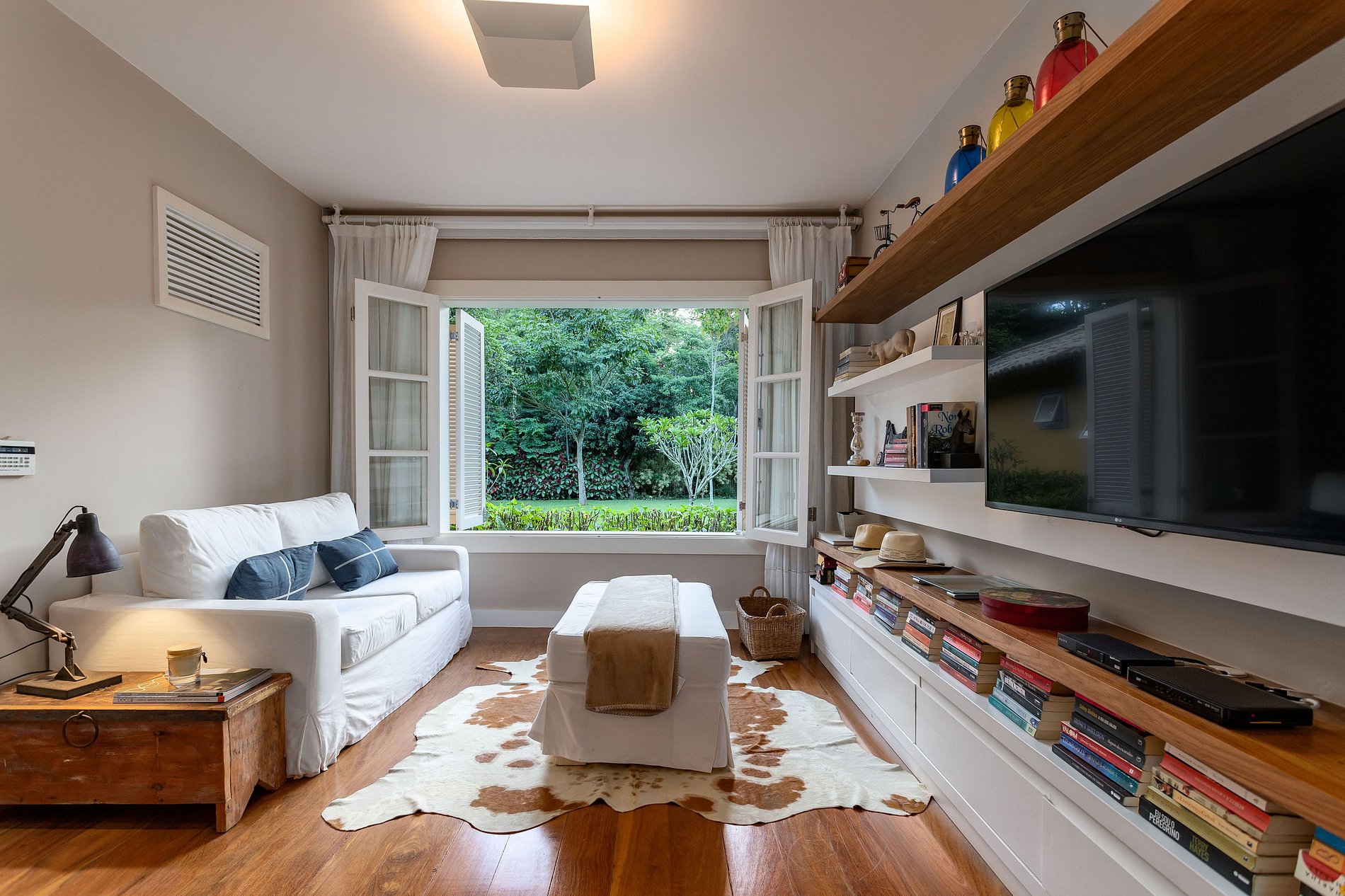 Falando em relaxar, na casa principal uma aconchegante sala de TV para sessões de seus filmes e séries. A sala de estar com lareira para colecionar boas lembranças de conversas regadas a bons vinhos. Ainda na casa principal, sala de jantar, cozinha com copa, lavabo e 4 suítes sendo: