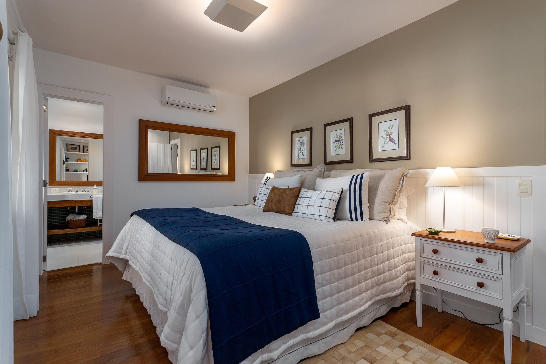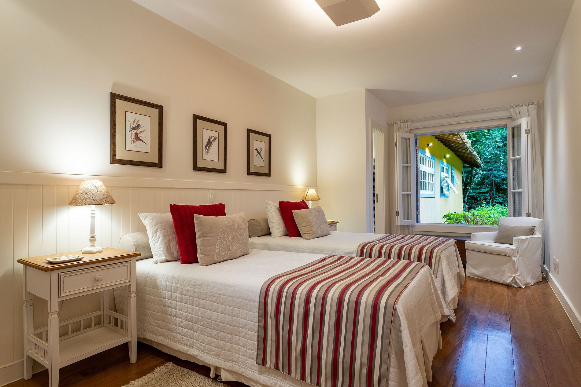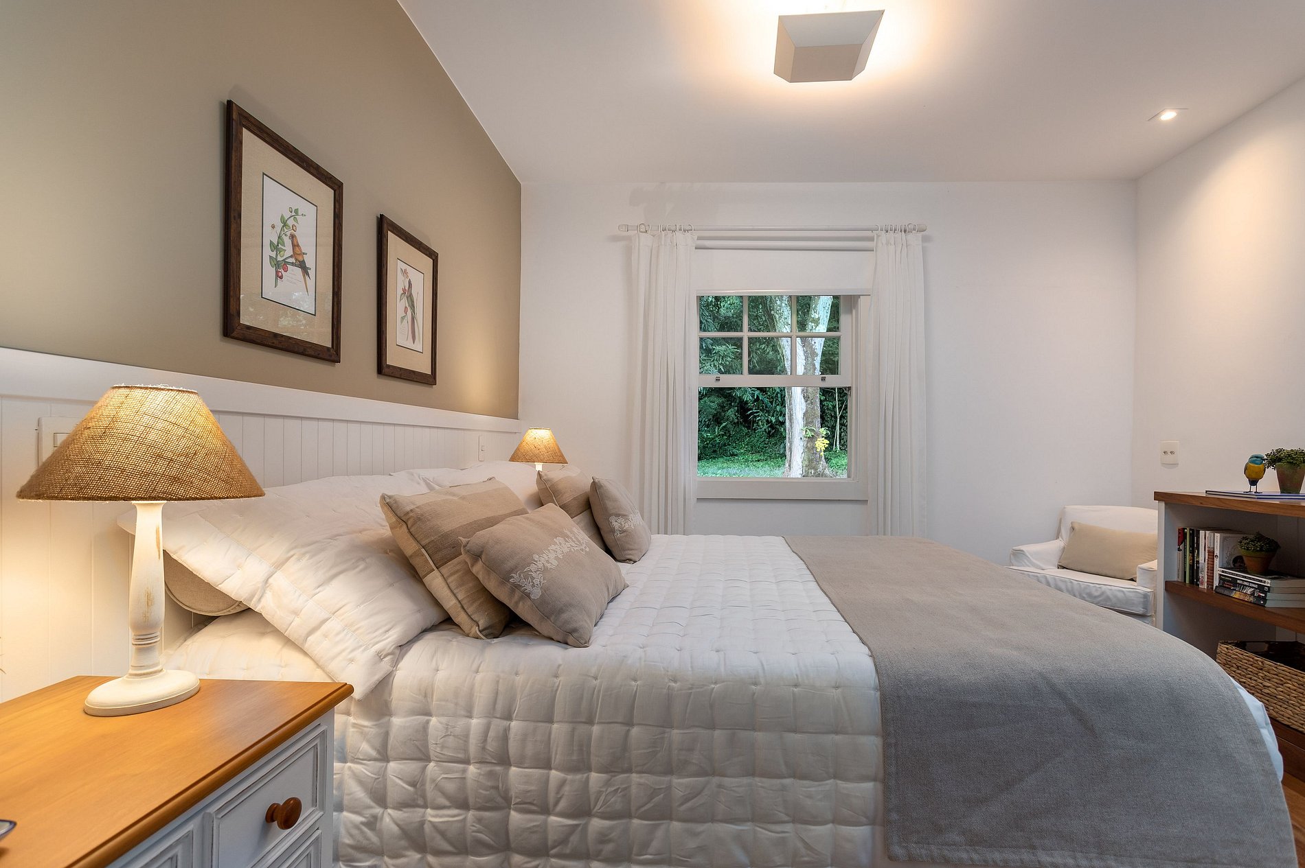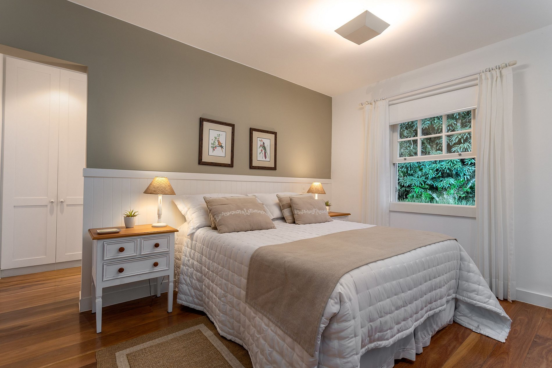Na casa de hóspedes mais 2 suítes, uma com cama king e a outra com cama queen e entre os quartos um charmoso home office.