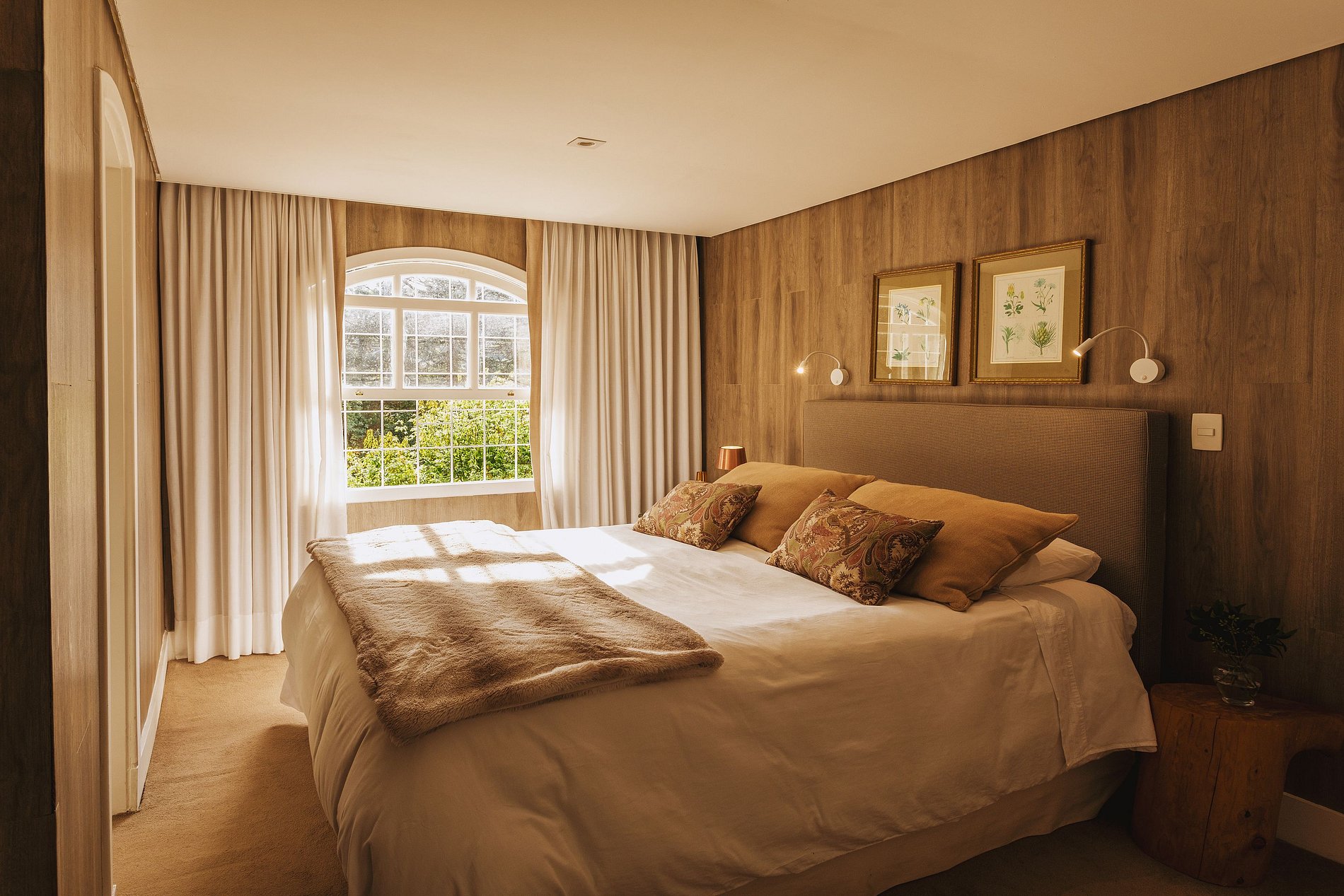 Suíte 1 Master: 1 Cama King Size, com lareira e vista pra mata.
