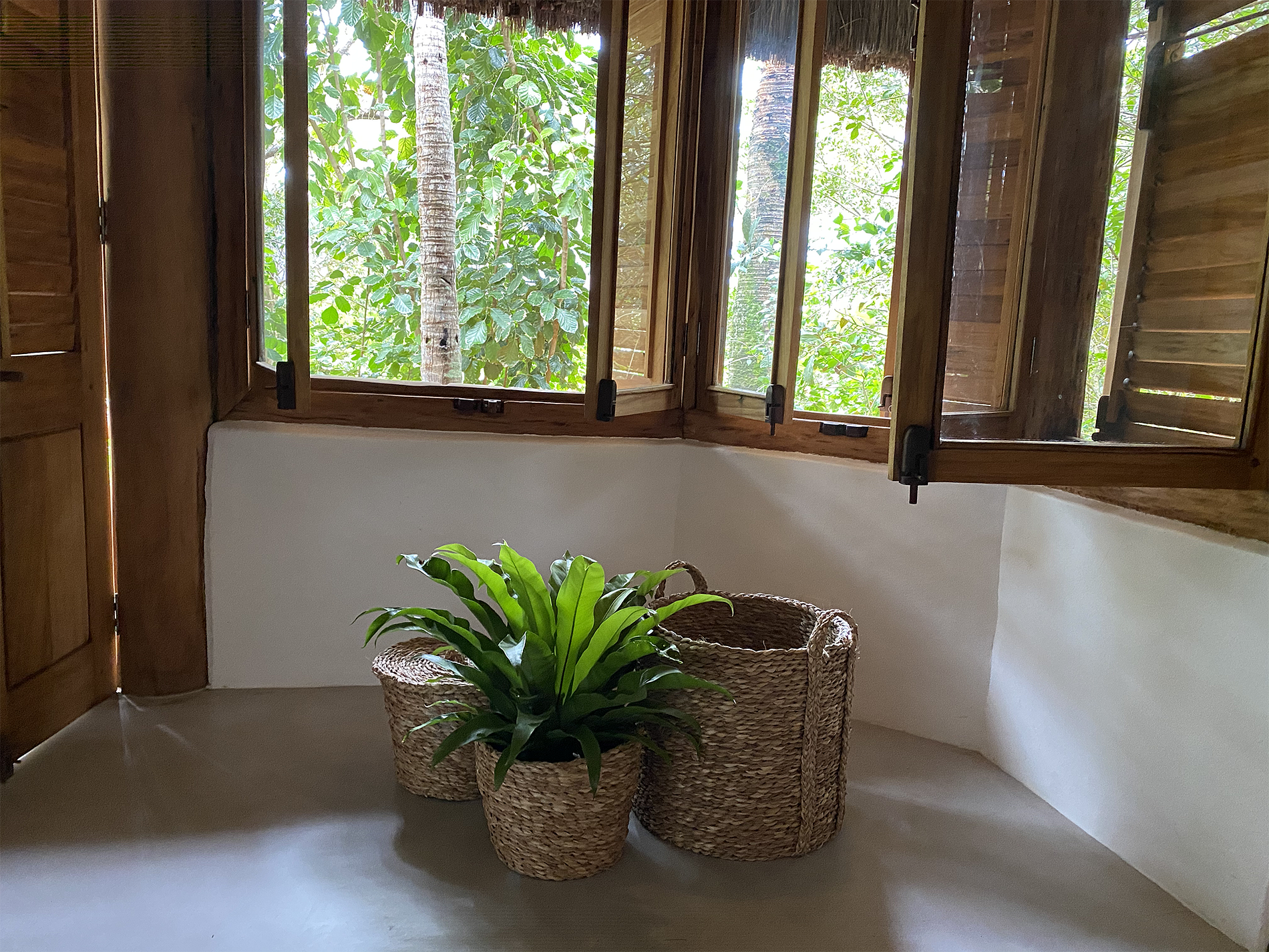 Com ar aconchegante e convidativo, cercado de muito verde e com uma vista espetacular. Sala e cozinha são ao ar livre e integradas a uma varanda bem grande com uma vista incrível do mar, perfeito para aproveitar os melhores momentos em família em contato com a natureza.