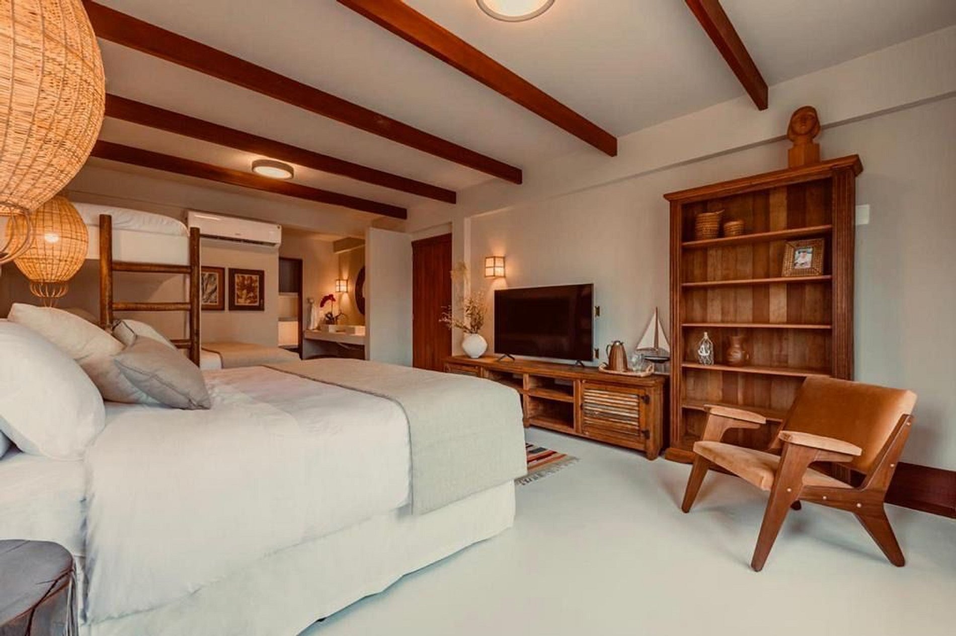 Aproveite as experiências como, cinema ao ar livre com projeção à beira-mar, equipamentos disponíveis para Surf de bodyboard, Stand Up, Bike e para treino funcional ao ar livre. Quadra de beach tennis, de futevôlei e vôlei armada na praia em frente a casa, com raquetes e bolas apropriadas disponíveis.