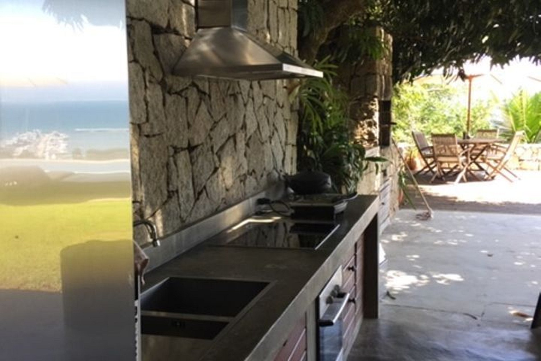 Ha 2 geladeiras side by side, Cervejeira, máquina de gelo, forno e fogão elétricos , micro ondas. Enxoval completo para as suites e toalhas de piscina todos brancos.