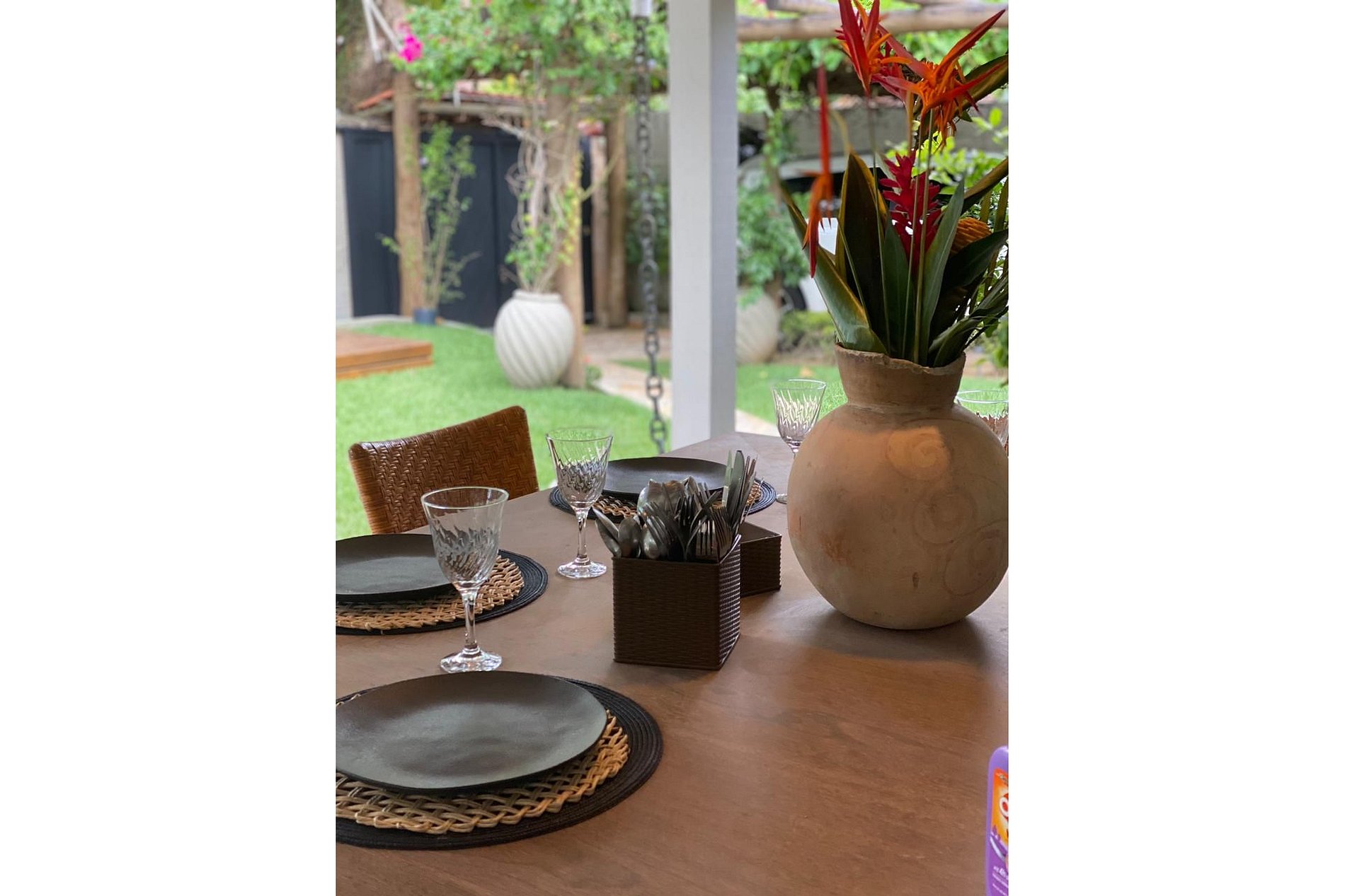Possui 3 suítes e 2 quartos super confortáveis com ar condicionado, sala de estar e Living com Smart TV 50" LED, espaço gourmet com forno de pizza , churrasqueira e cozinha completa integrados a um grande terraço que privilegia a convivência e o descanso dos hospedes junto ao jardim e piscina.