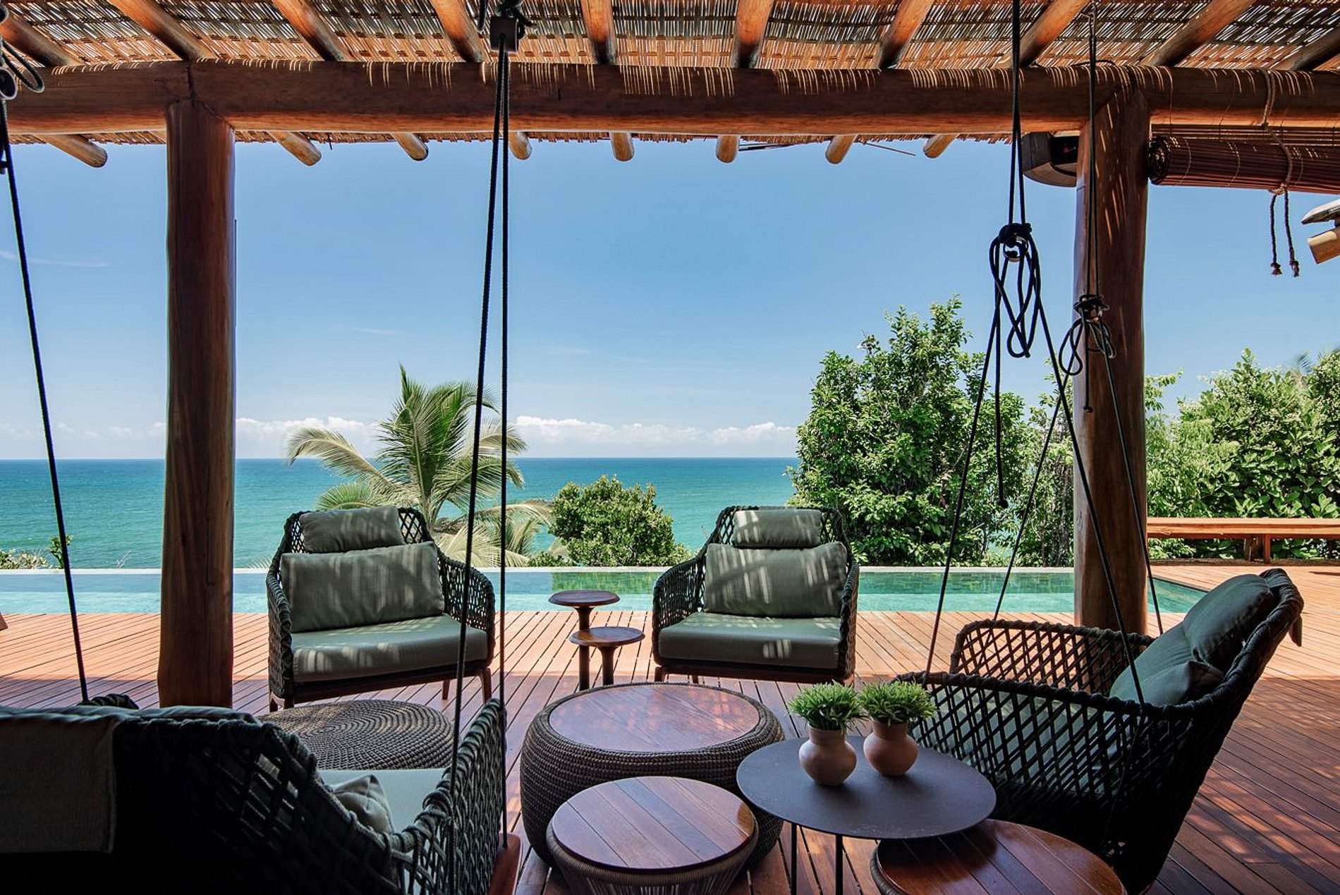 A piscina com vista mar, se mistura ao jardim de Mata Atlântica nativa.