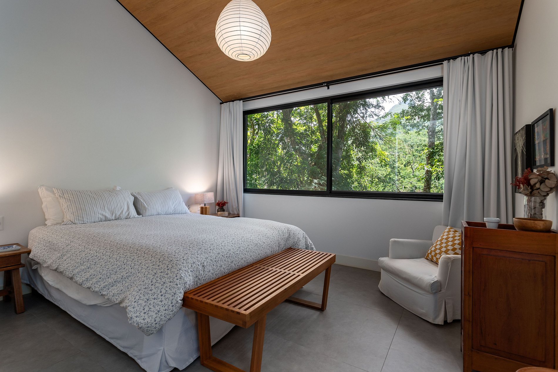 Recém construído em 2023, com o terreno de 5000m2, o projeto do arquiteto Sérgio Conde Caldas, a composição separa a casa em 2 blocos exclusivos.