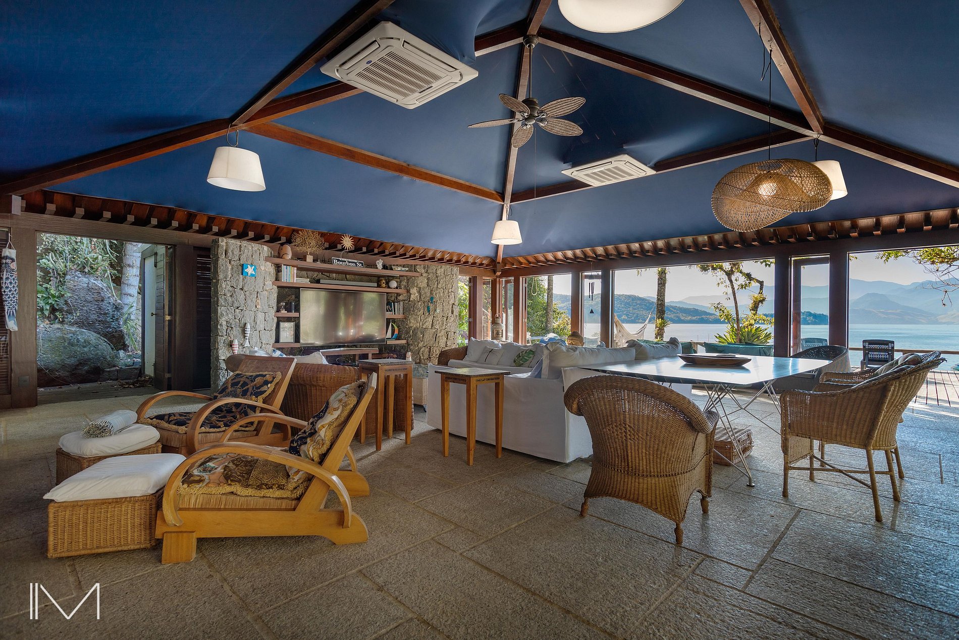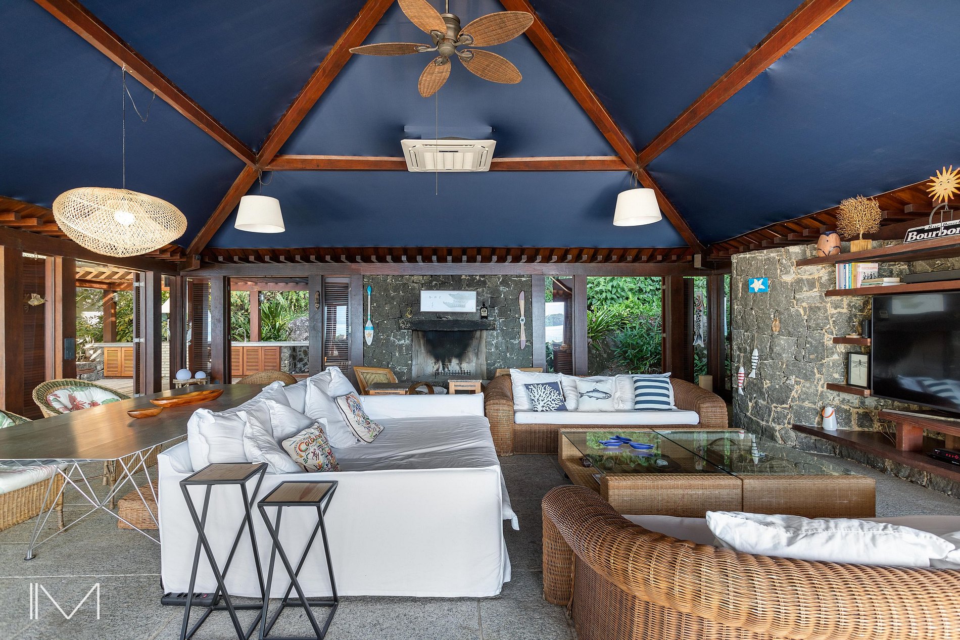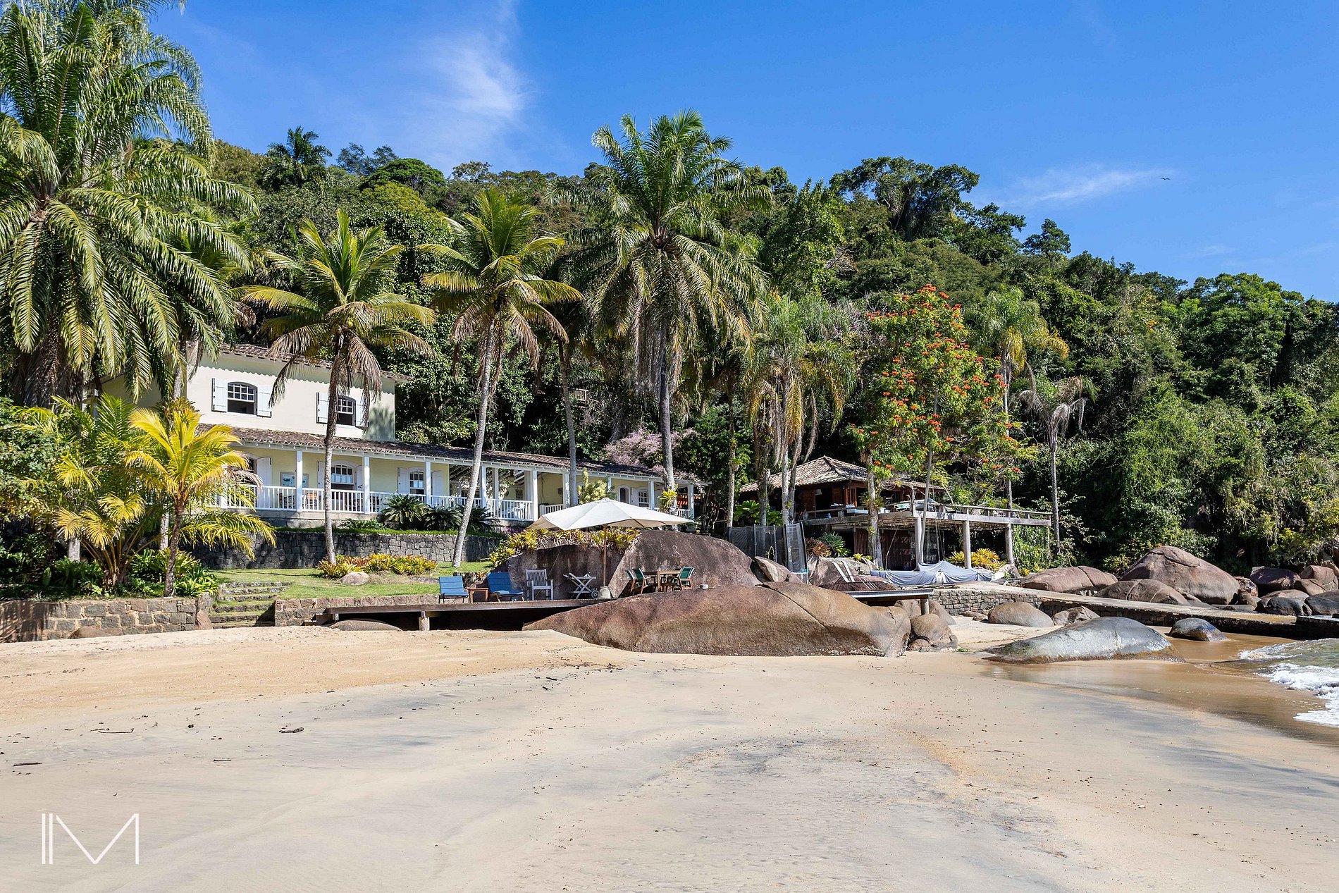 Além da praia exclusiva, oferece sala de estar, sala de jantar, varanda gourmet com churrasqueira, media room com lareira, academia e treehouse.