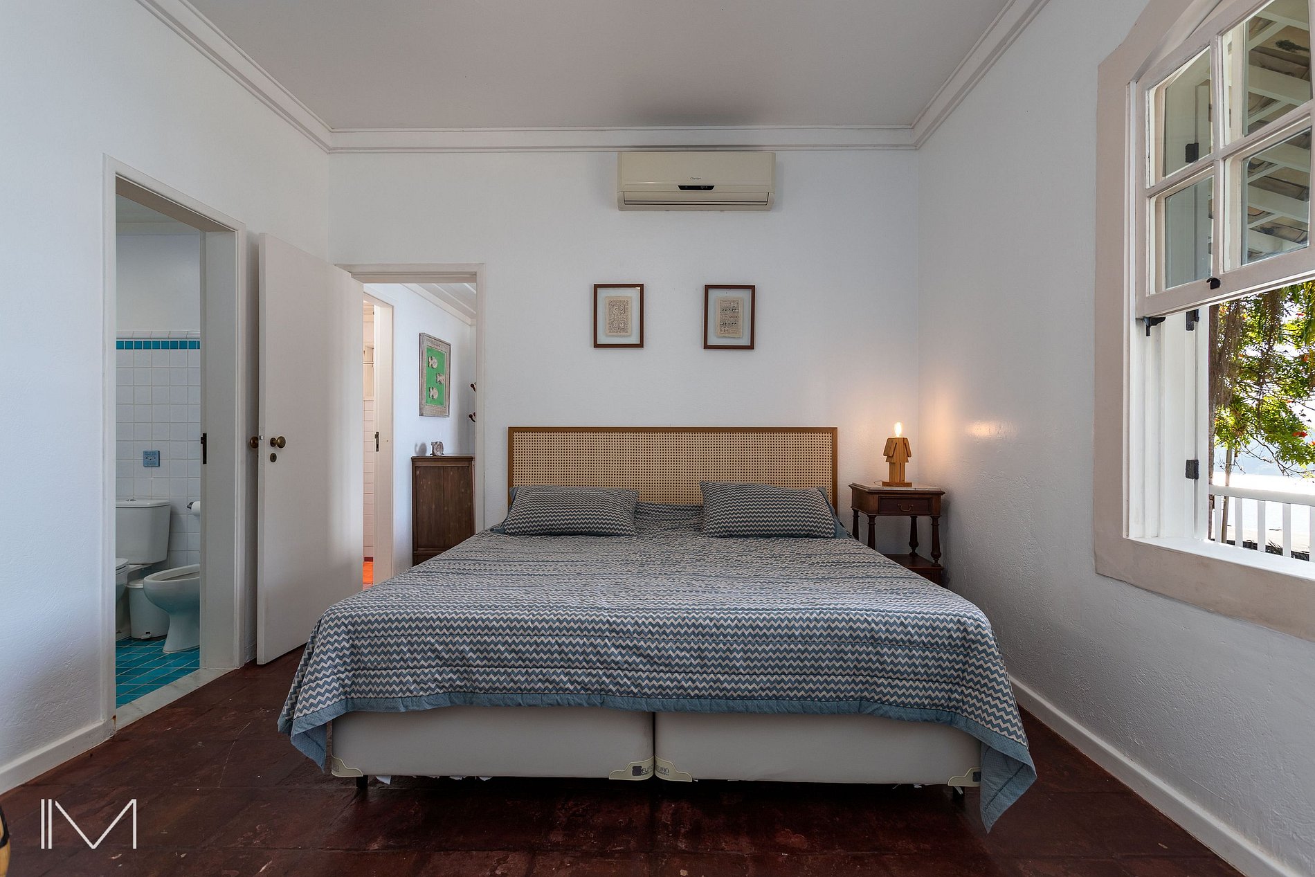 2 quartos que dividem um banheiro.
