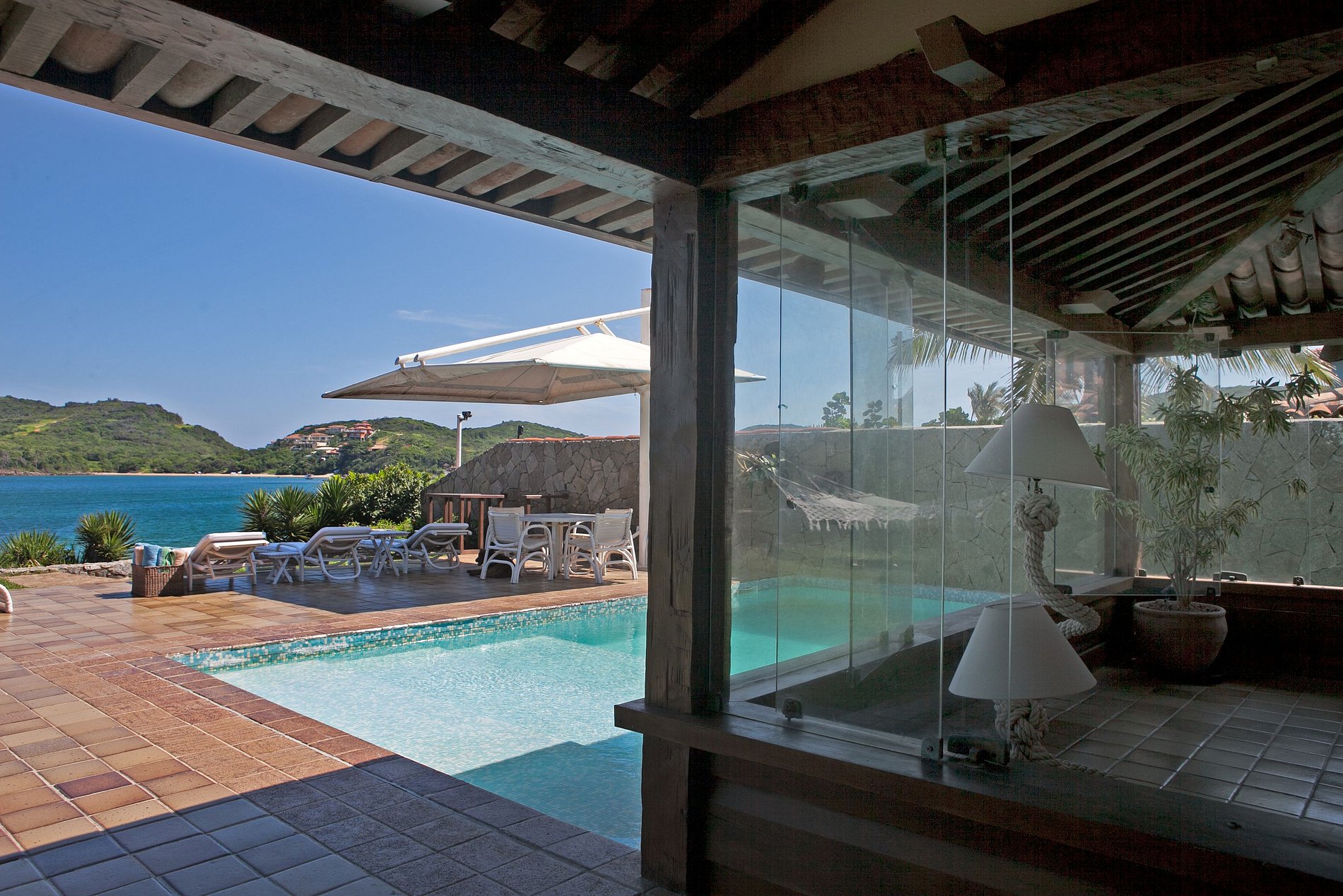 Charmosa casa “pé na areia” no centro da praia da Ferradura, com vista privilegiada do horizonte. Todas as 7 suítes oferecem ar condicionado, TV, lençol 300 fios e banheiro. Duas salas sendo uma de estar na beira do mar e cercada pela piscina e a outra com TV de 65’’ com SKY HD.