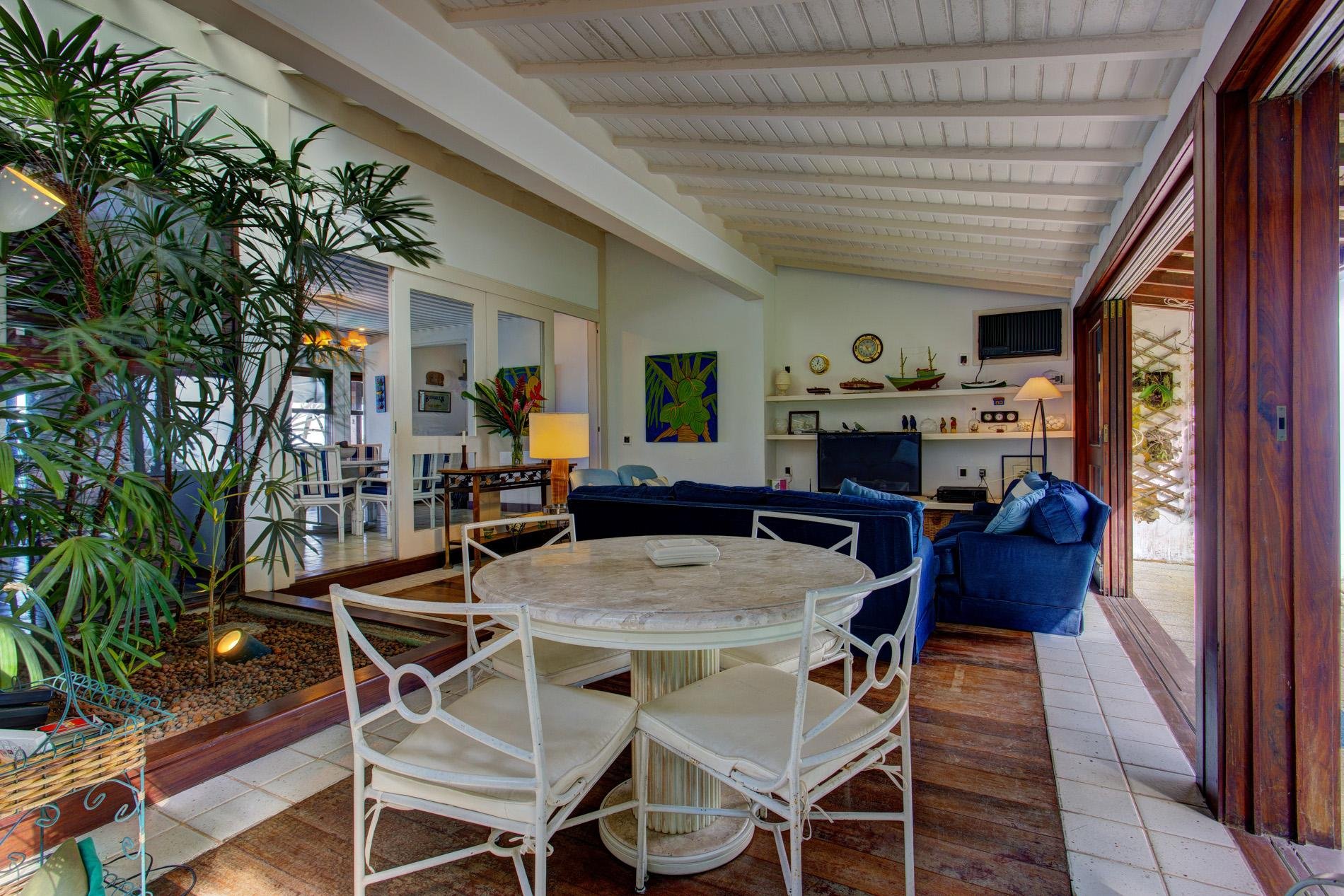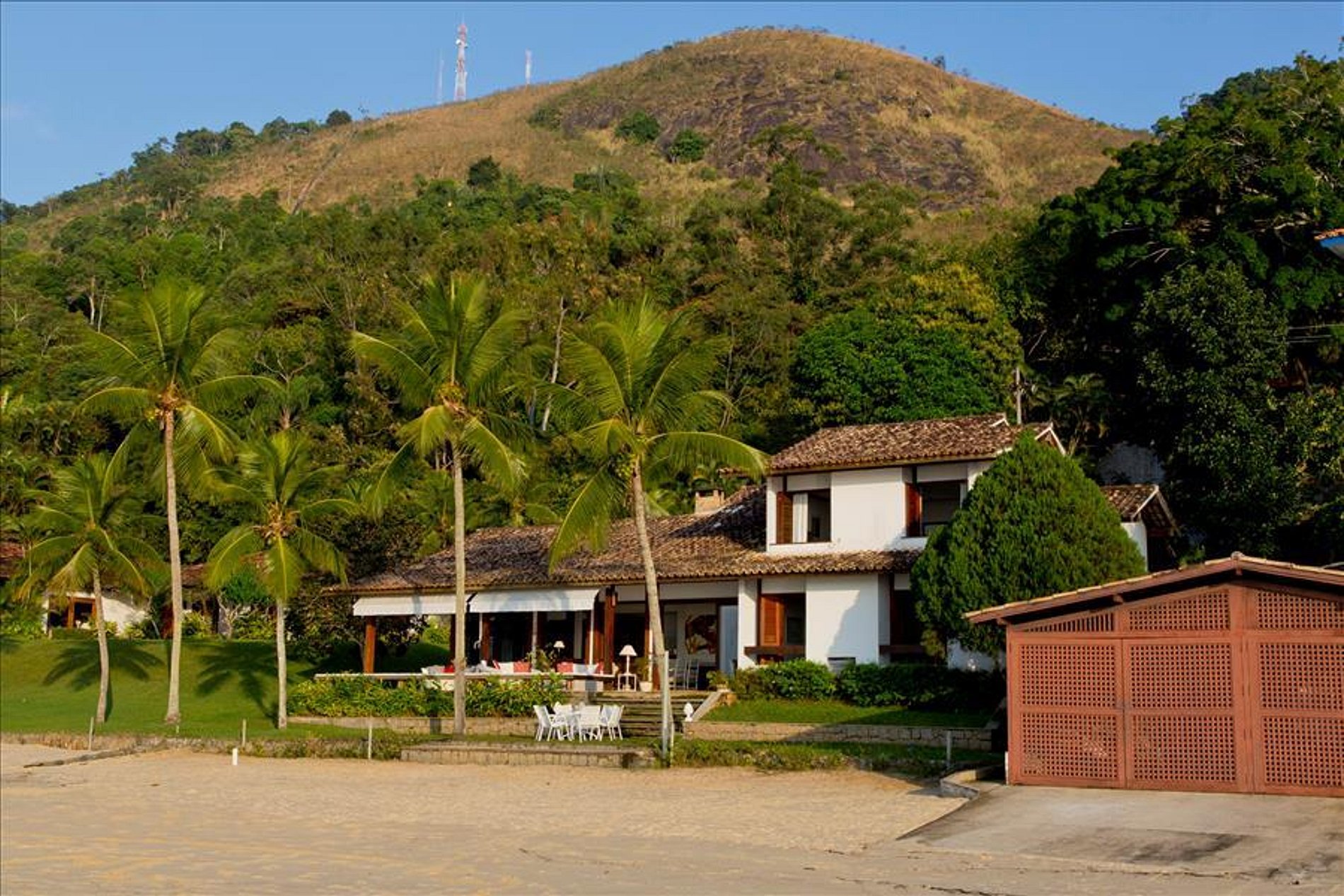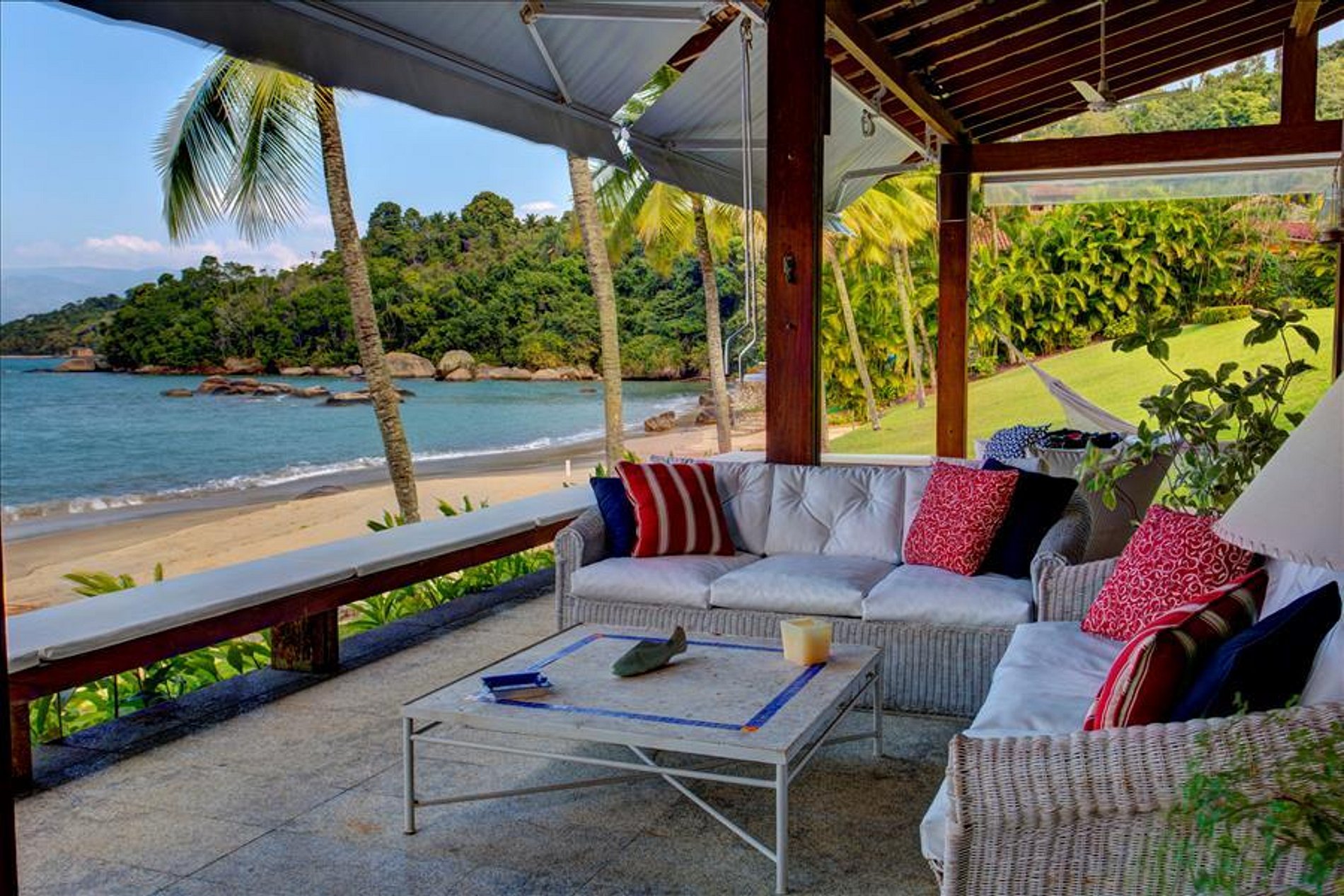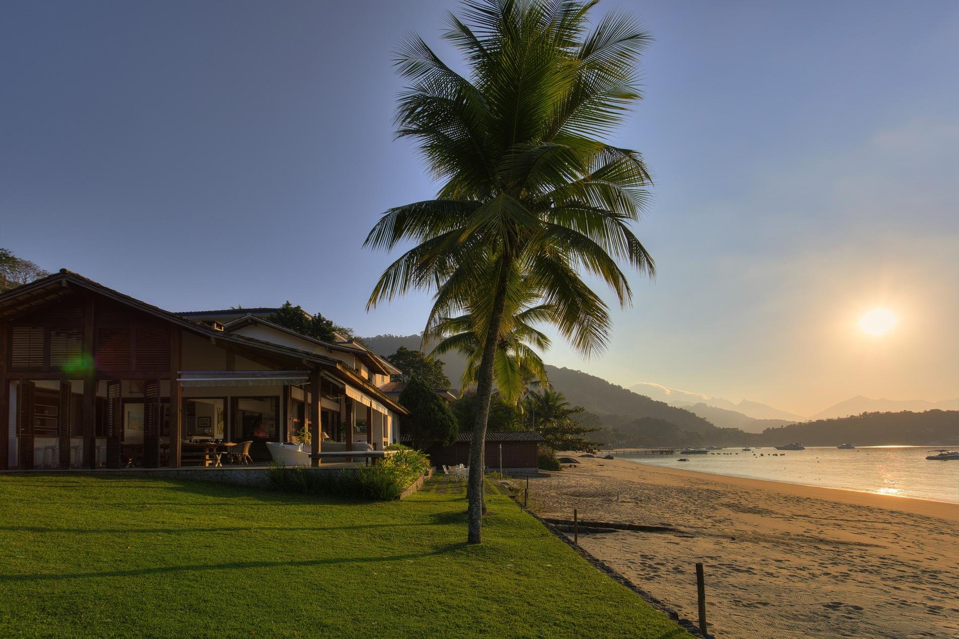 A casa dispõe de 3 salas com sofás confortáveis, TV, sauna úmida e jacuzzi com vista para o mar, além de uma churrasqueira portátil à disposição. A voltagem da casa é 110v. Sinal de celular e wi-fi constantes. Oferece heliponto na praia.