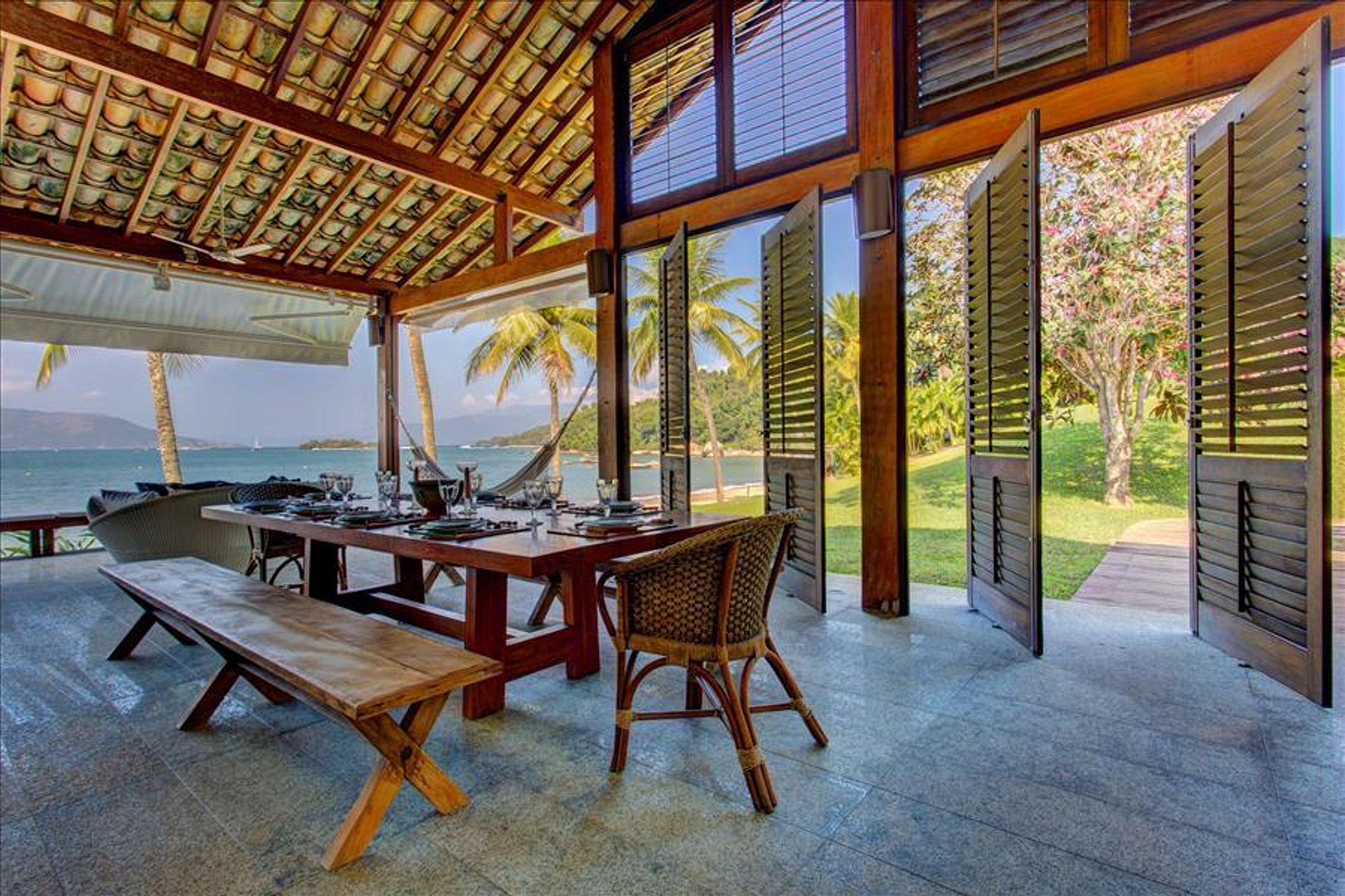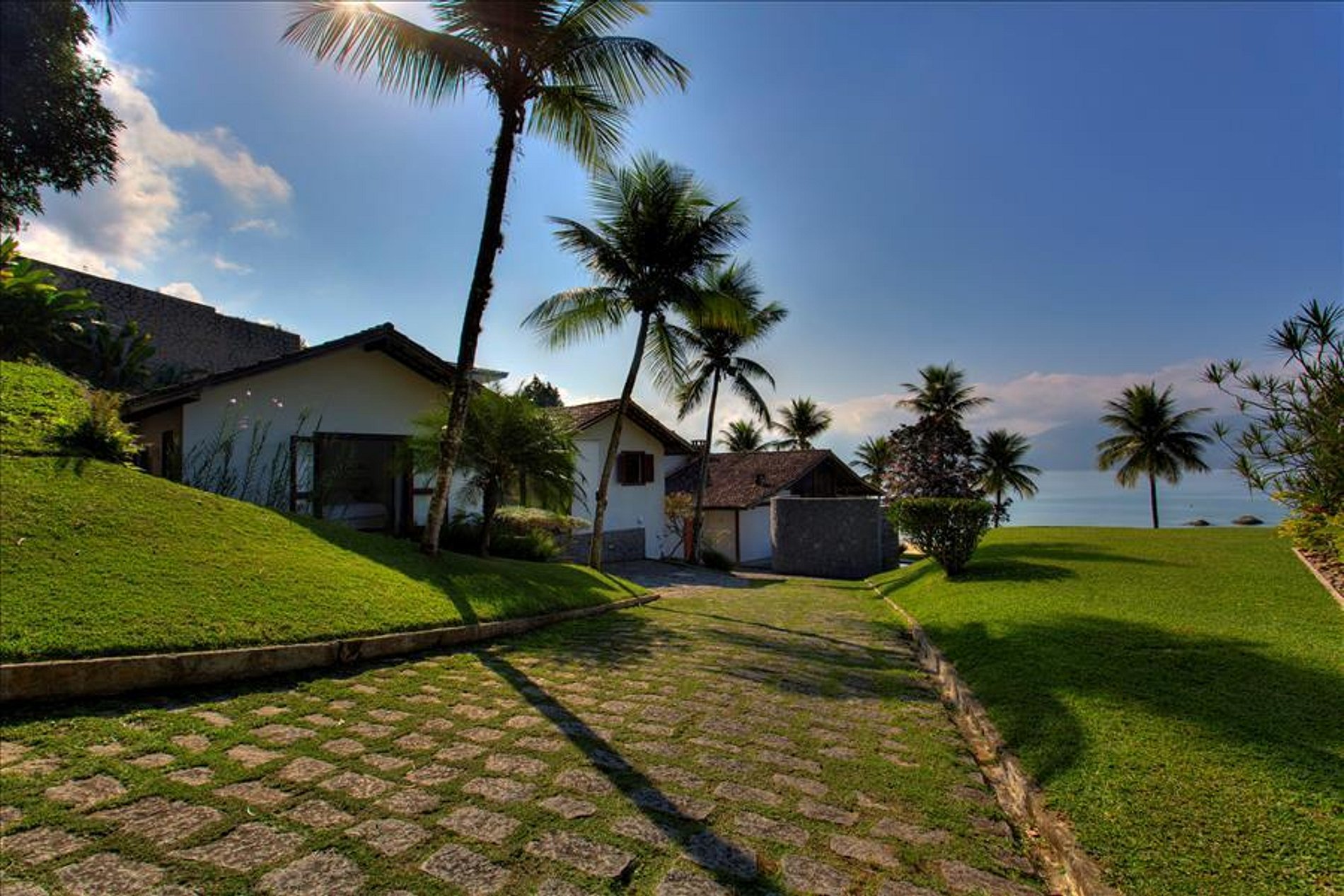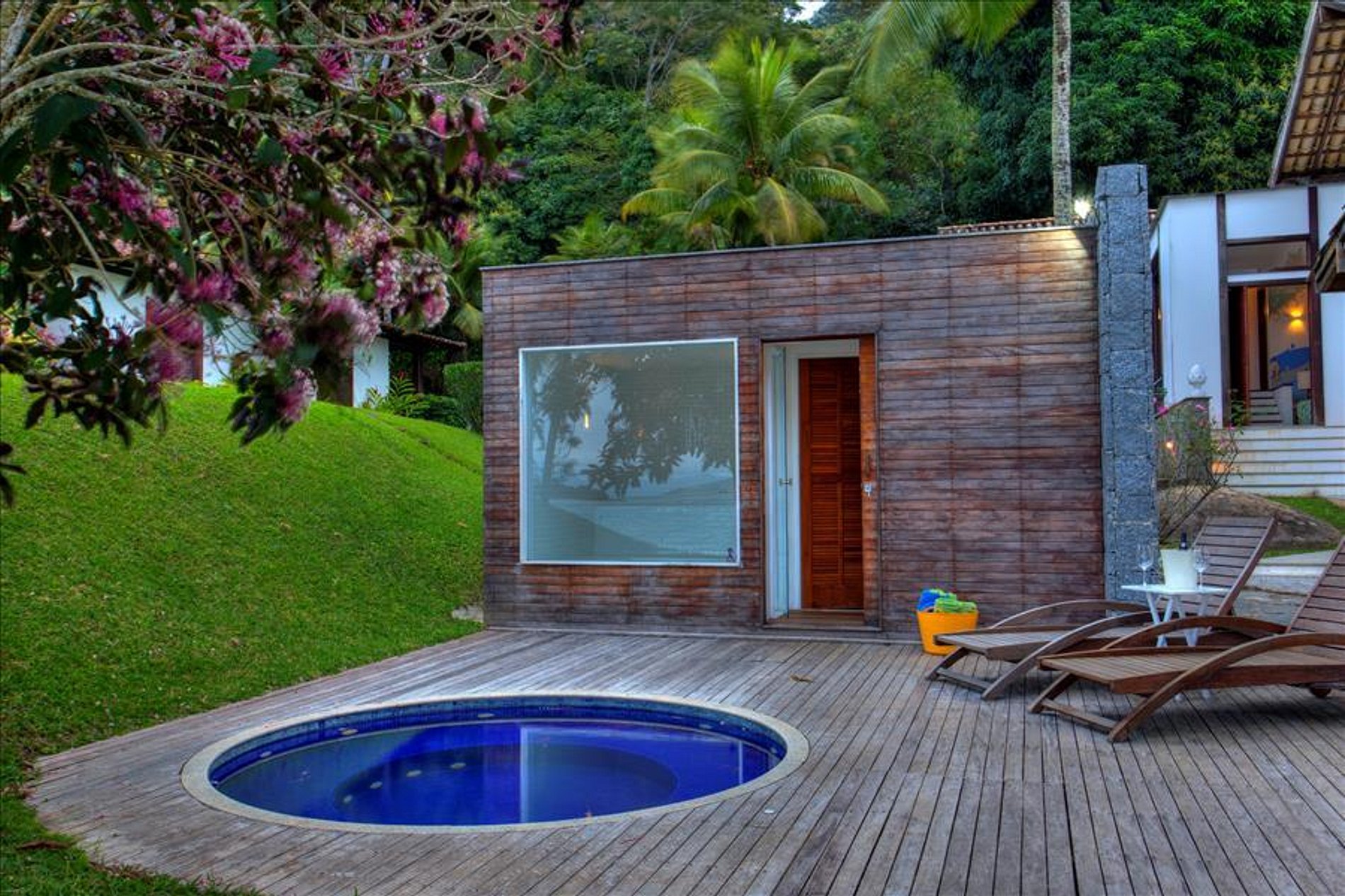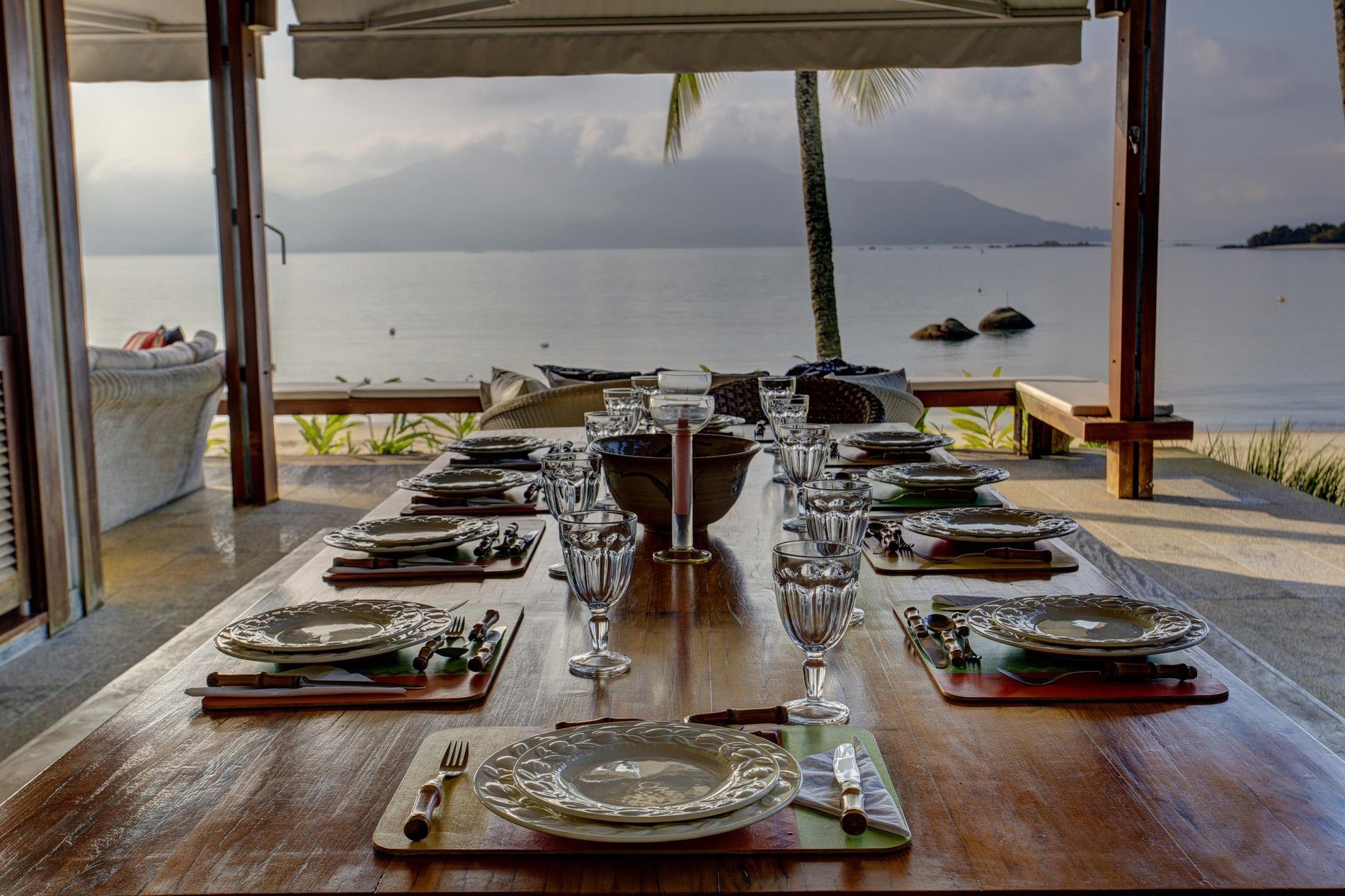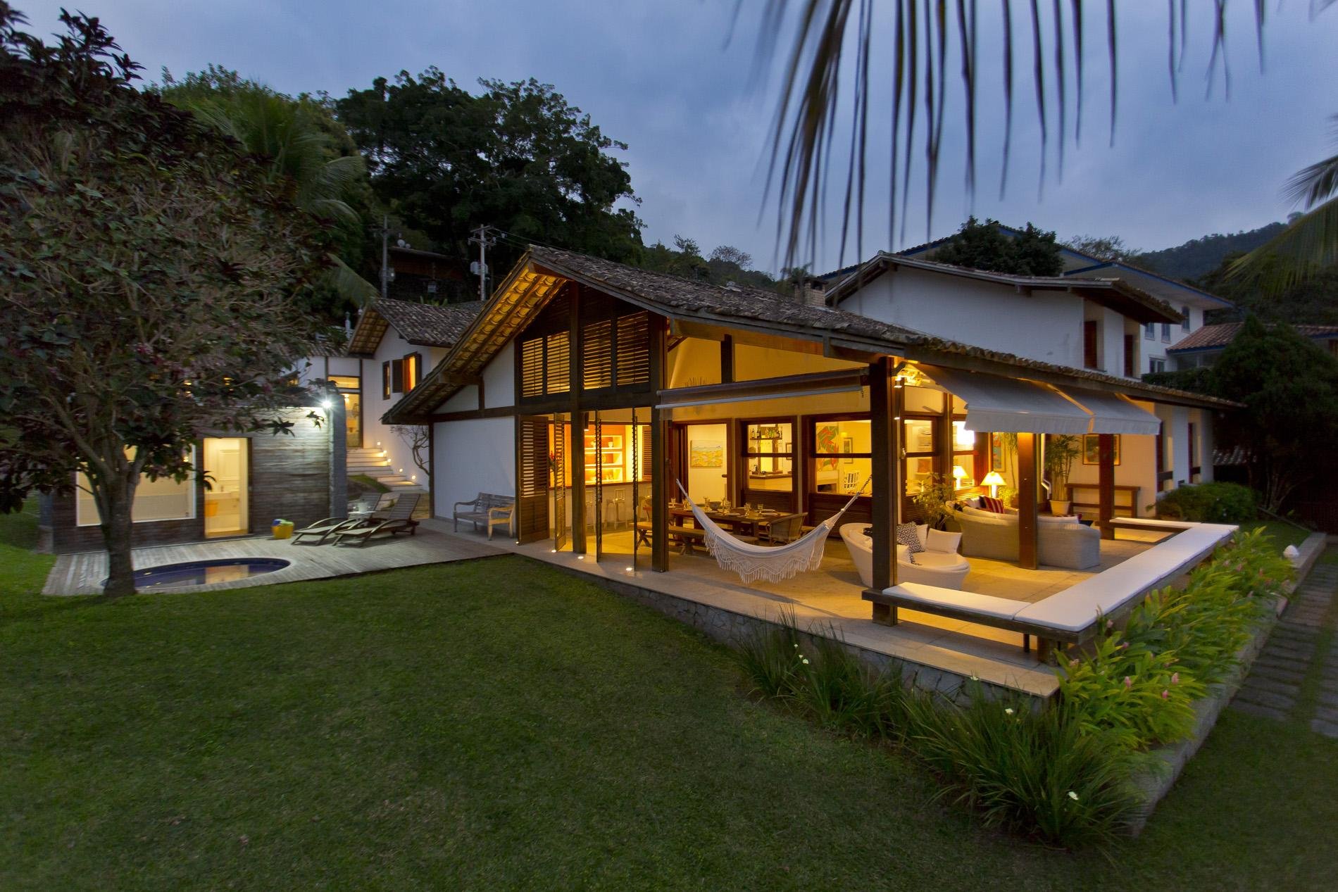 A casa dispõe de 3 salas com sofás confortáveis, TV, sauna úmida e jacuzzi com vista para o mar, além de uma churrasqueira portátil à disposição. A voltagem da casa é 110v. Sinal de celular e wi-fi constantes. Oferece heliponto na praia.