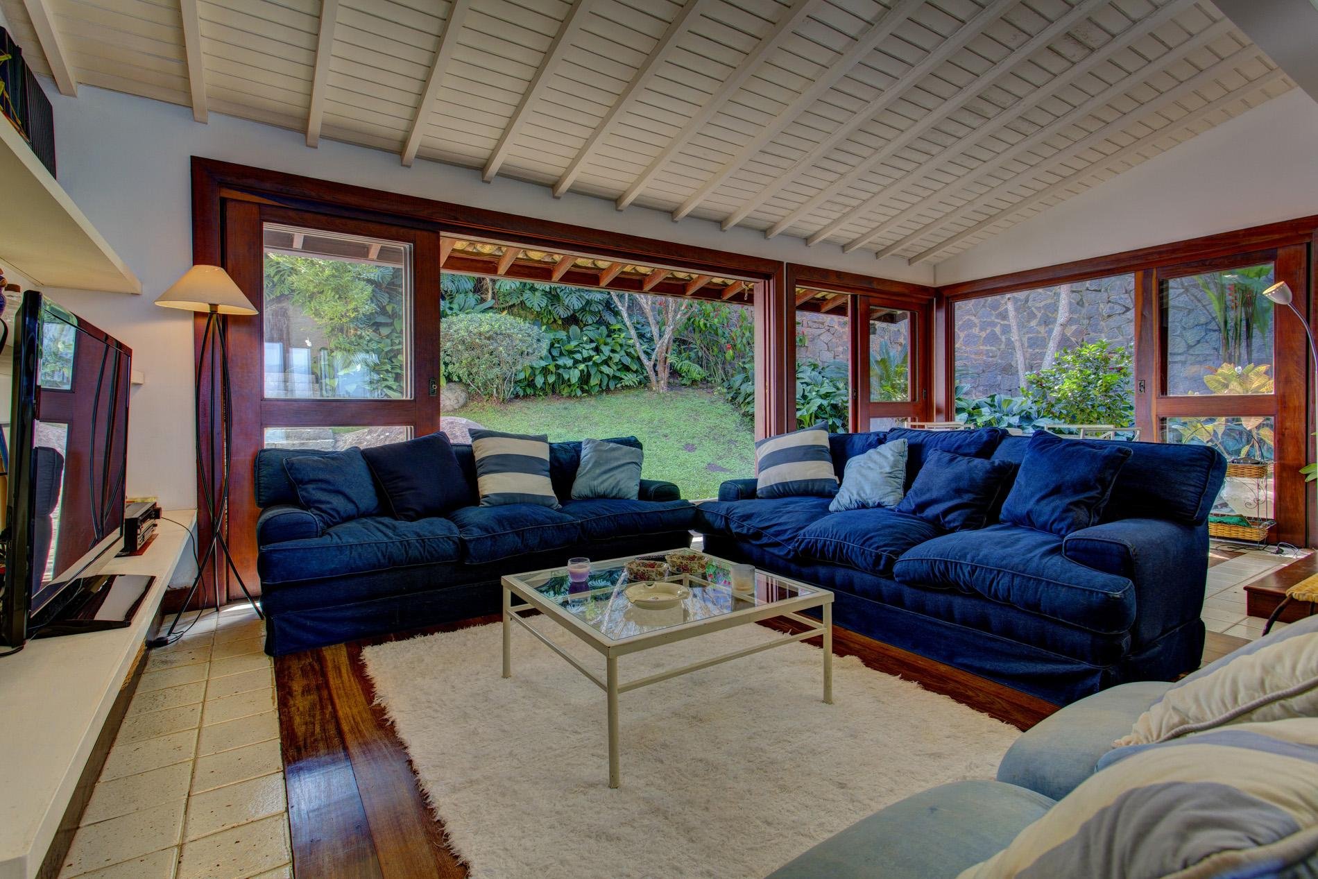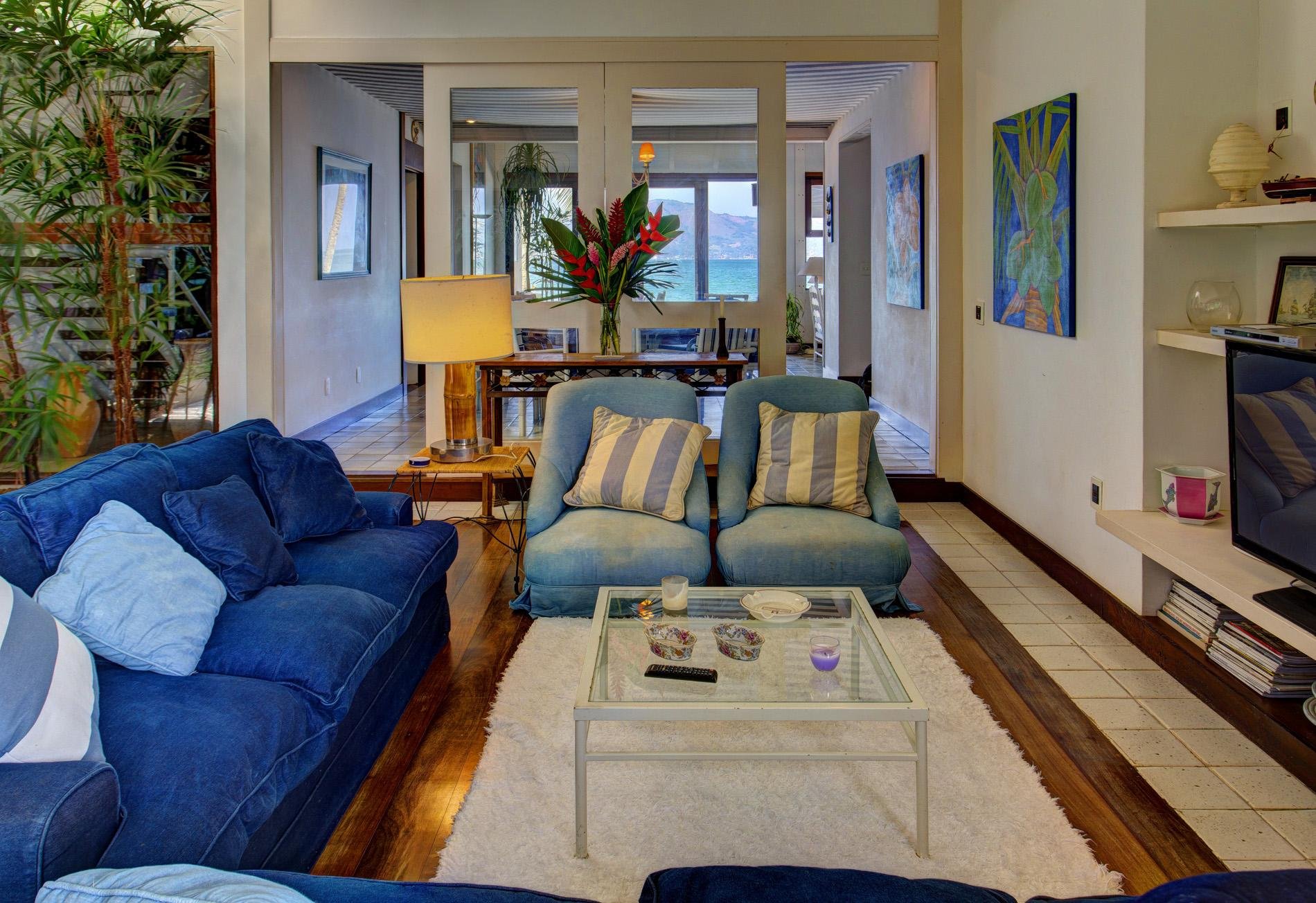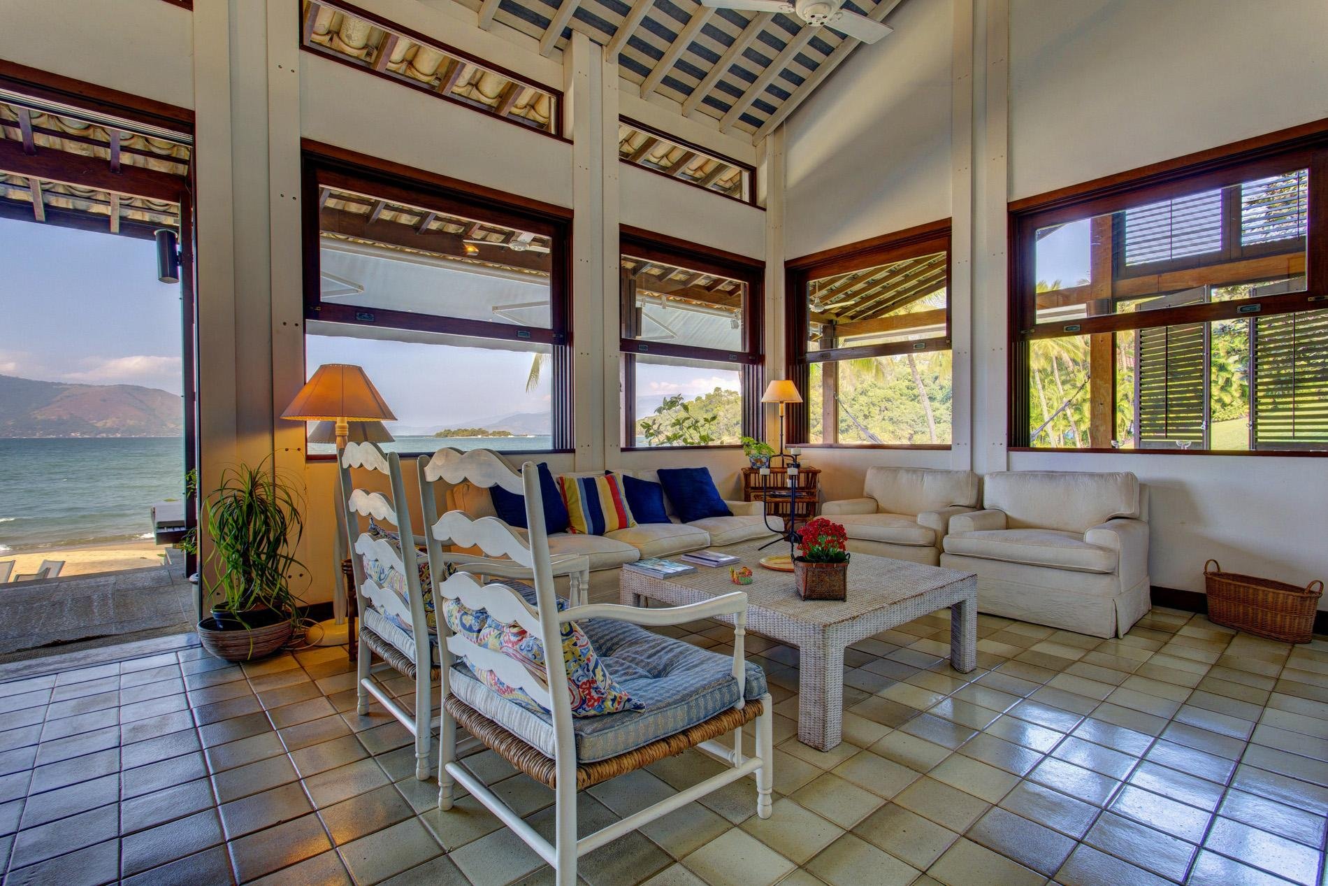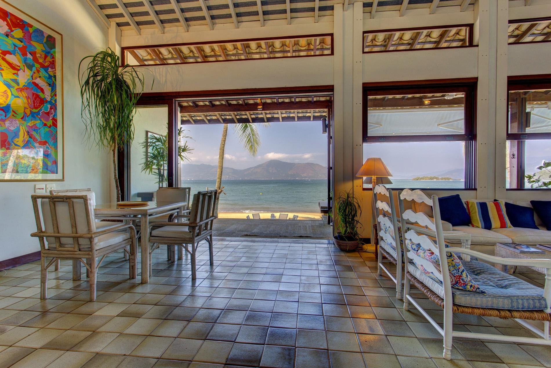 A casa está localizada no Condomínio Fazenda Mombaça, em frente à praia da Mombaça: área privativa e tranquila de Angra dos Reis.