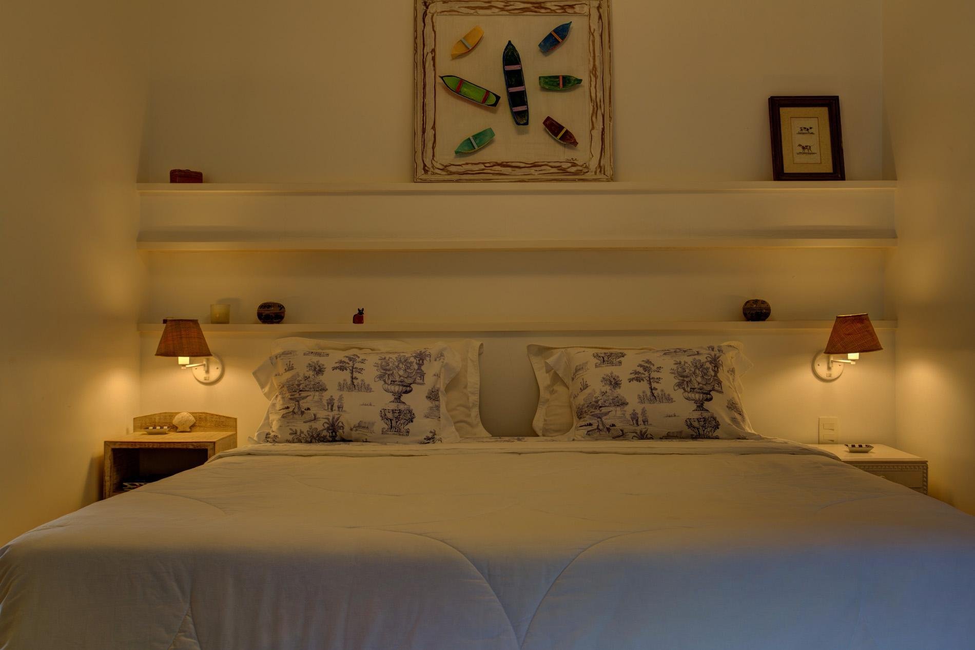 São 4 suítes com cama king.
