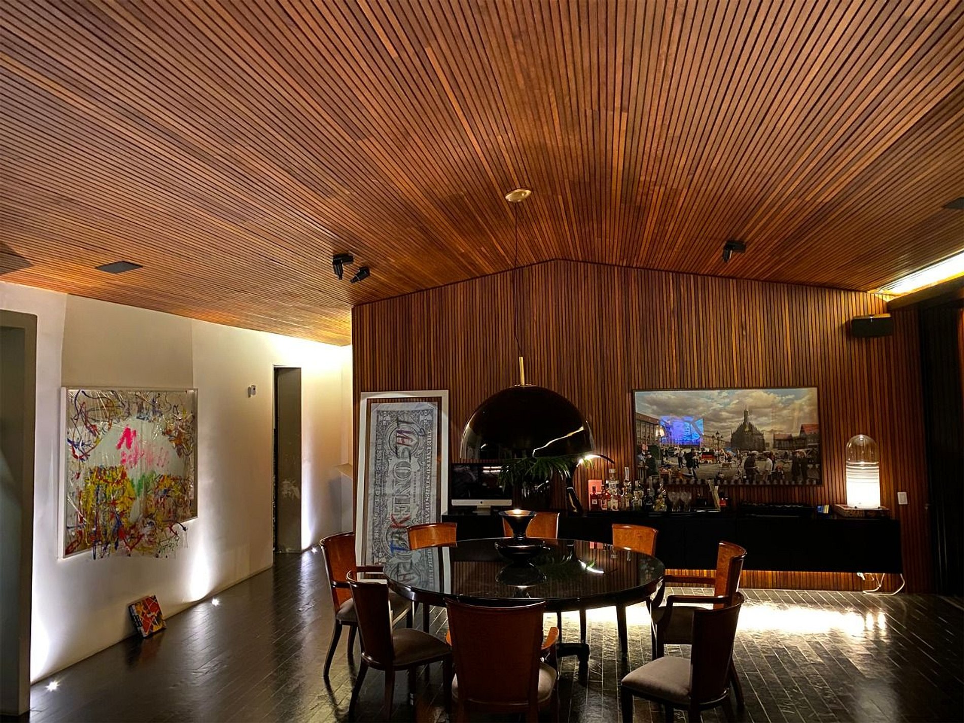 Com um lindo jardim com vista para a cidade, há uma boate com vedação acústica, sistema de som wi-fi na casa inteira, automação de luzes Alexa/Siri, piscina, vestiário com chuveiro, sauna, lounge externo grande com lareira, garagem para 3 carros e guarita com segurança 24h.